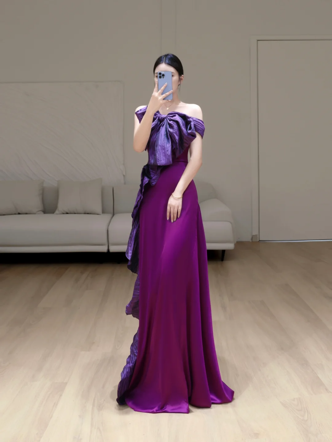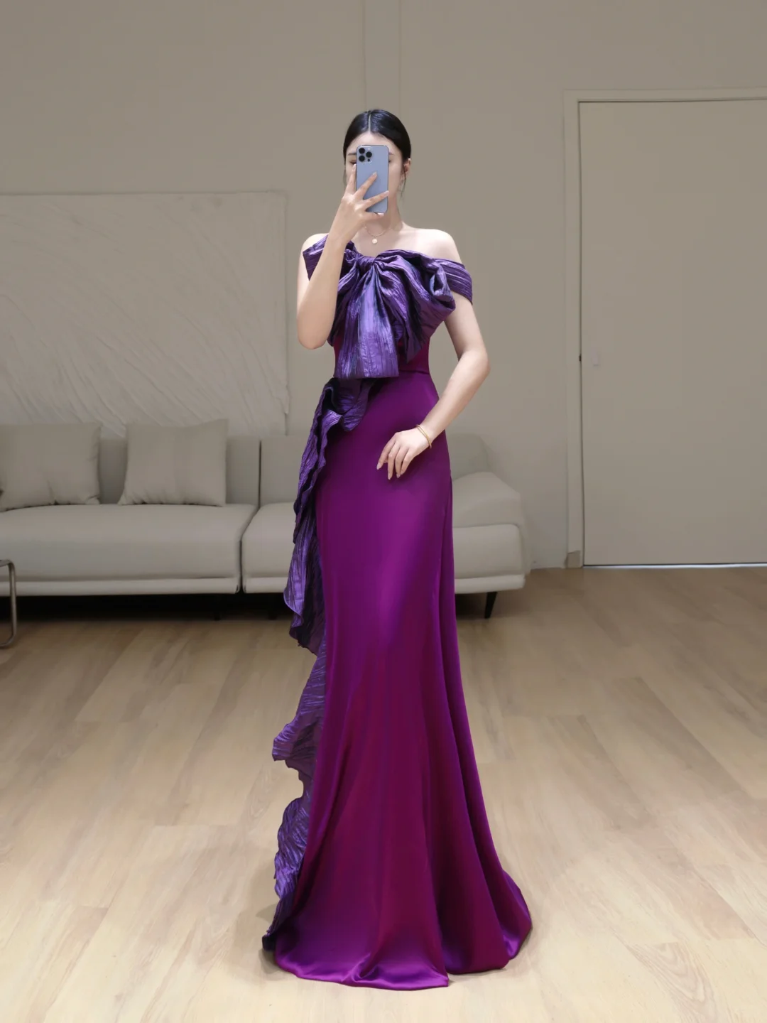 Gorgeous Mermaid Off The Shoulder Grape Satin Long Prom Dress Party Dress Graduation Dresses HZ1214