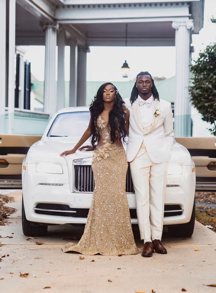 Gorgeous Mermaid V Neck Gold Flowers Sequin Long Prom Dress Party Dress Graduation Dresses HZ1214