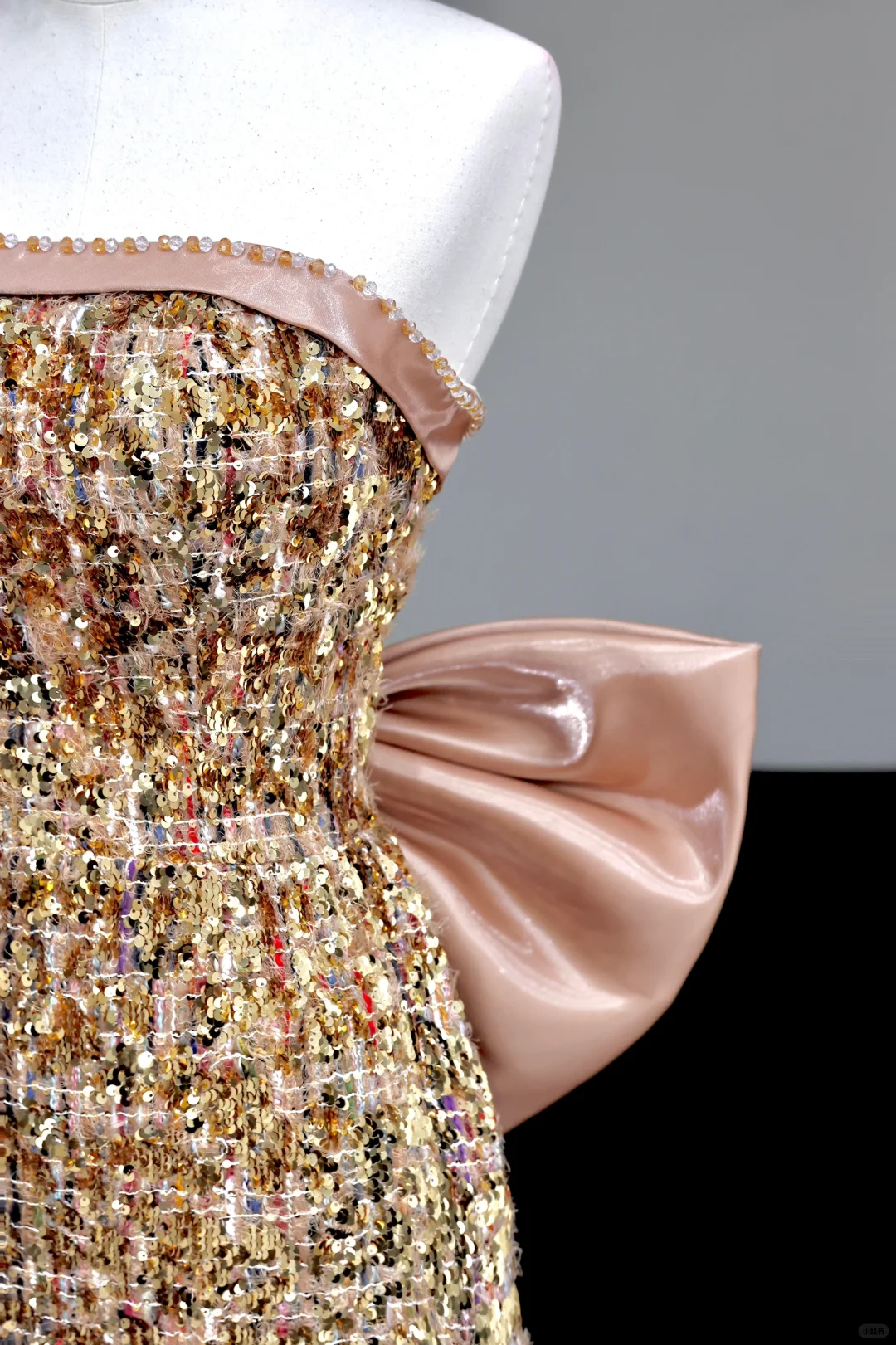 Gorgeous Sheath Strapless Sequin Gold Long Prom Dress Party Dress Graduation Dresses HZ1214