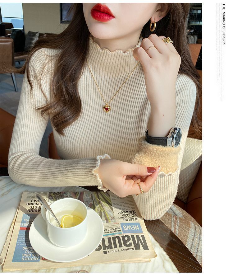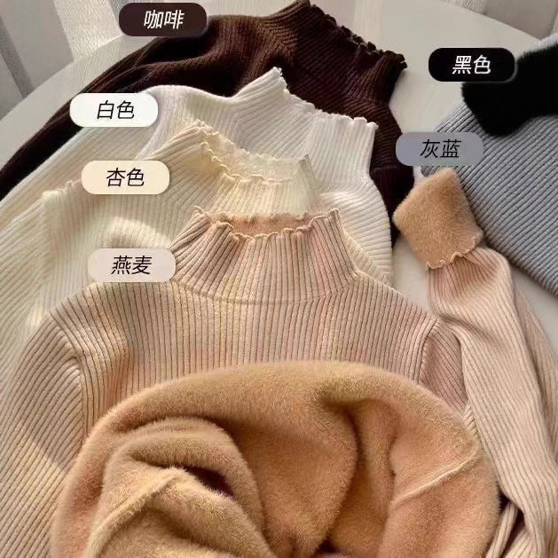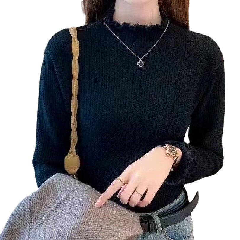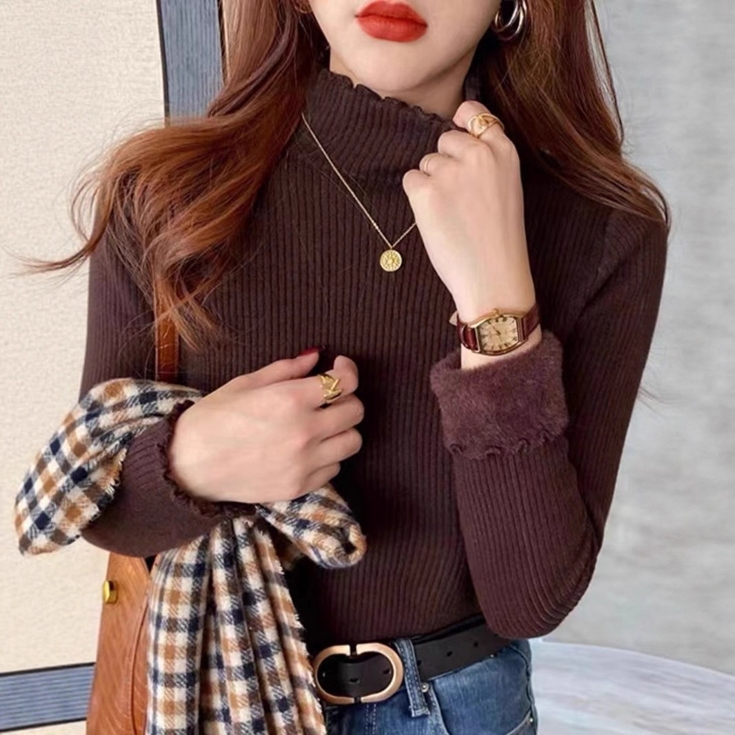 Half-High Collar One-Piece Velvet Bottom Shirt For Women With Autumn And Winter New Plus-Thick Sweater Knitted Cotton Jersey HZ0108