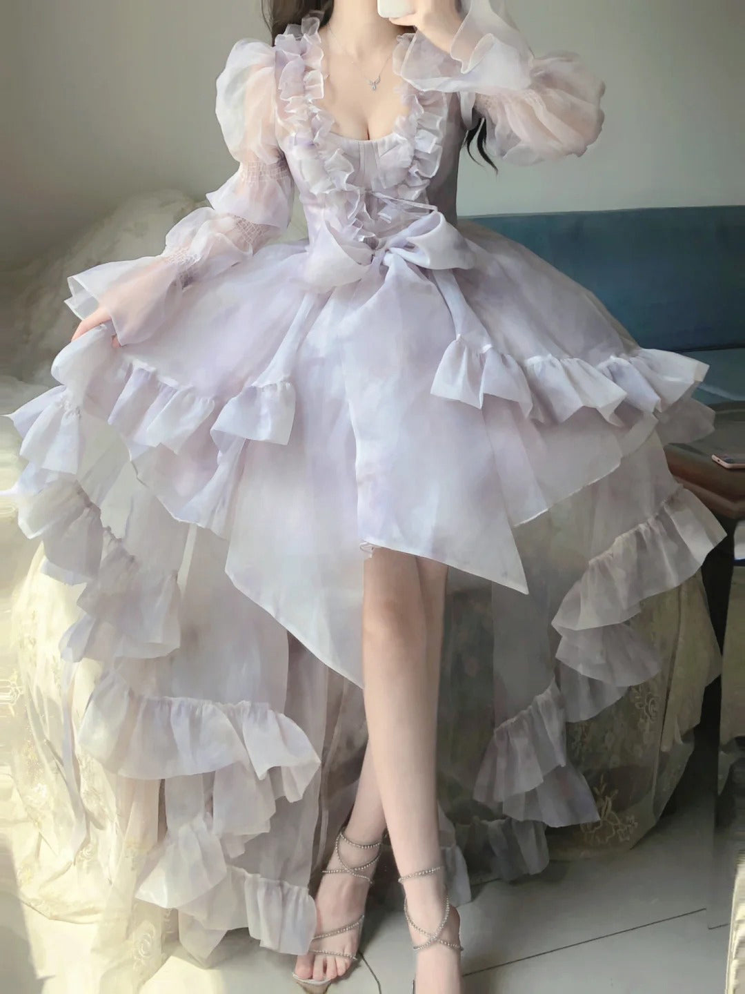 Niulatu High Low V Neckline Floral Holiday Dress Birthday Dresses Birthday Outfits SD1304