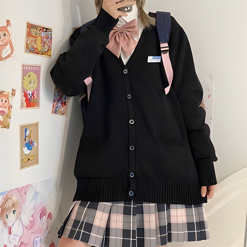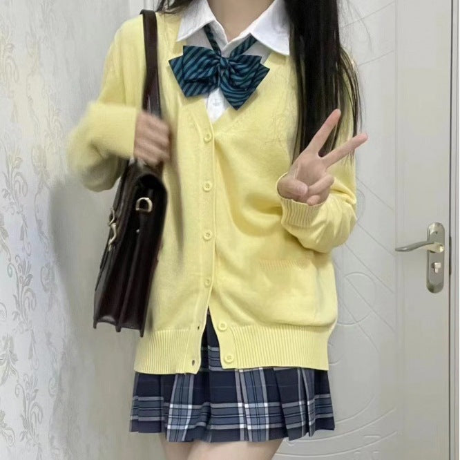 JK Uniforms Fall College Outside The Wind Loose Solid Sweater Knitted Cardigan Thin Coat Women's Top HZ0108