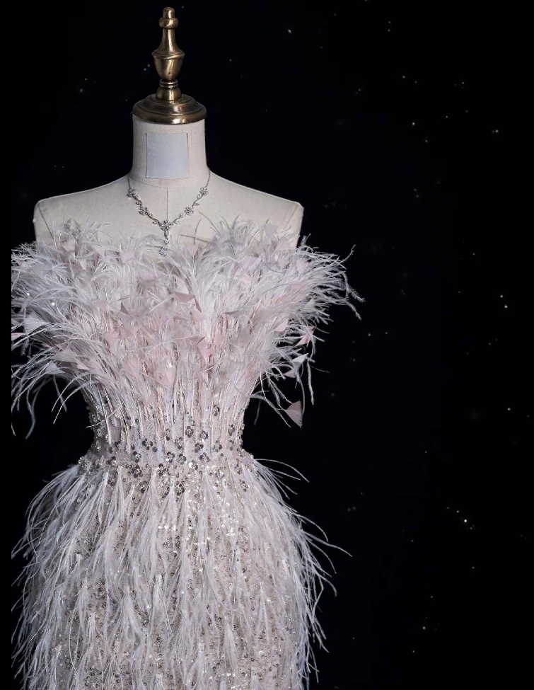 Niulatu Mermaid Strapless Feathers Floor Length Evening Dress Sequin Prom Dresses SD1937