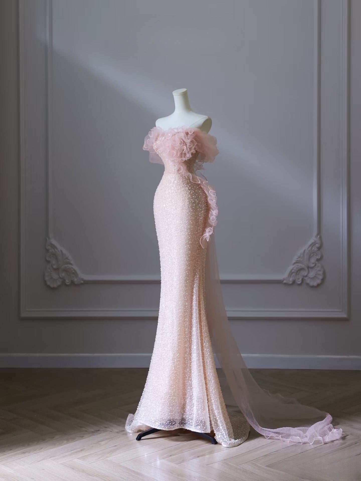 Niulatu Mermaid Strapless Pink Sequin Long Evening Dress Prom Dresses SD2495