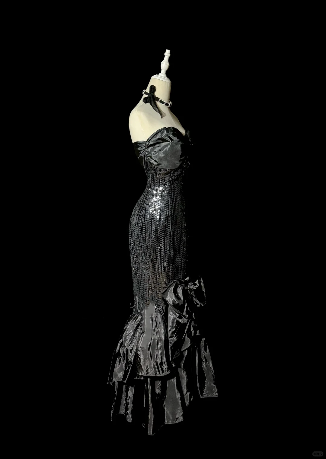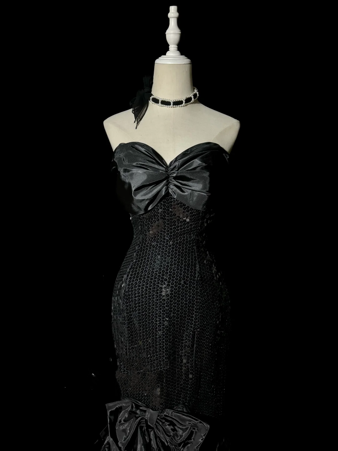 Niulatu Mermaid Sweetheart Black Sequin Long Prom Gown Fairy Prom Dresses SD2961
