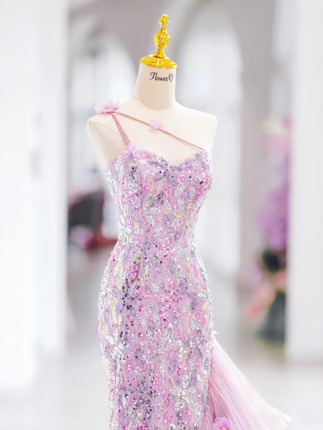 Modest Mermaid One Shoulder Pink Sequin Long Evening Party Gowns Evening Dress Special Formal Dresses Prom Dress HZ1121