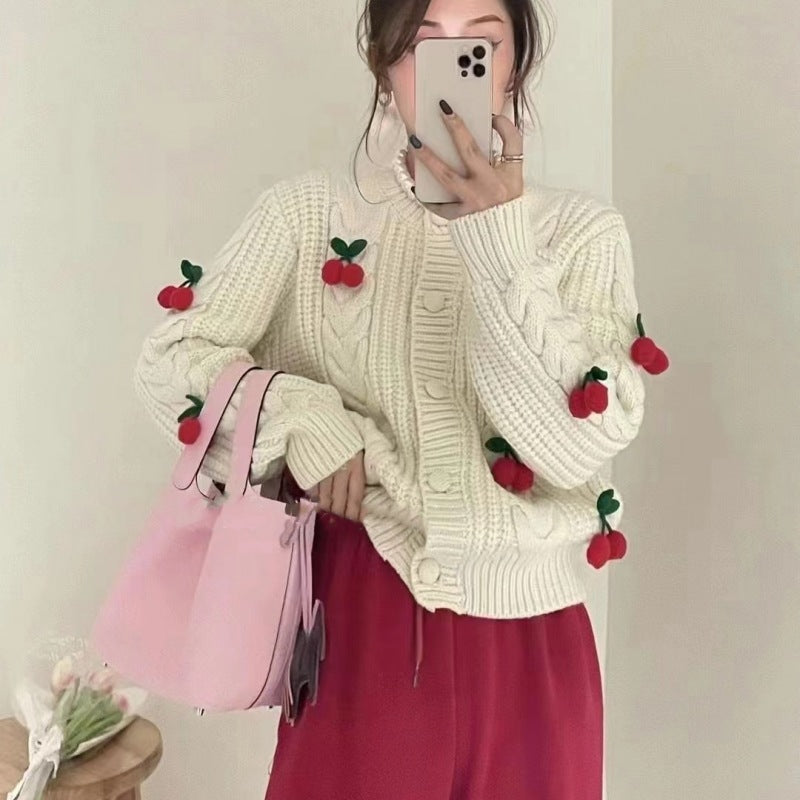 New Cherry Age-Slepeak Sweet Sweater Women's Short Thick Knitted Cardigans Lazy T-Shirts In The Fall/Winter 2025 HZ0108