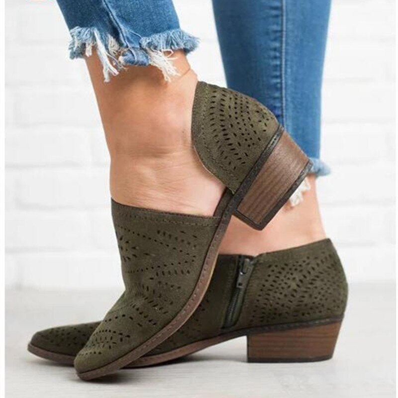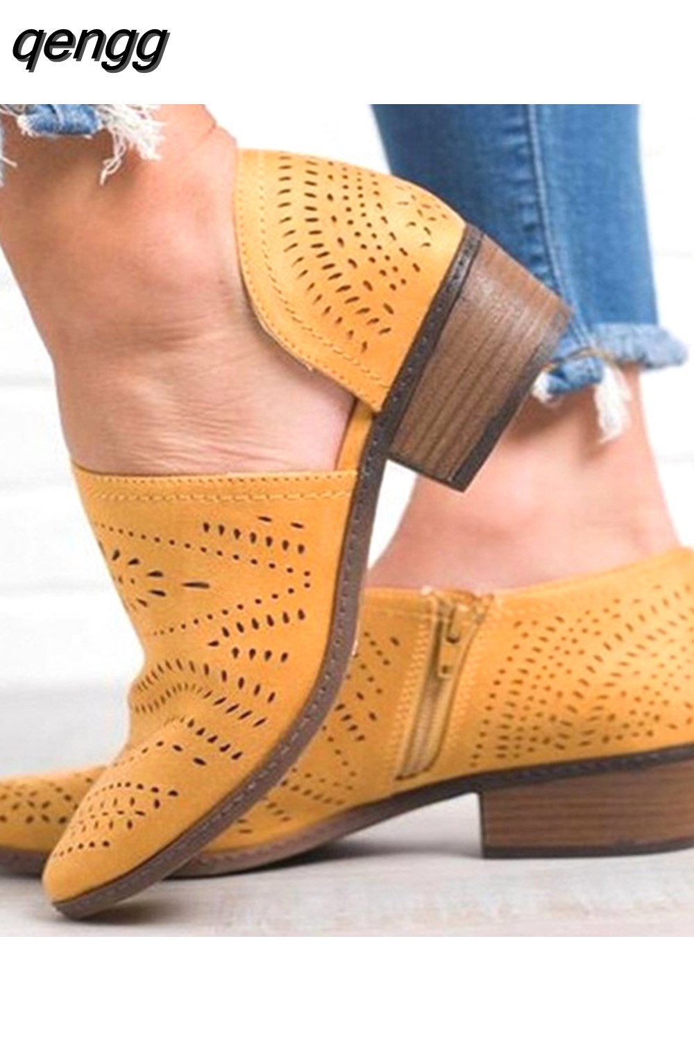 Niulatu 2012 Fashion Women Boots Spring Summer Block Low Heel Ladies Booties PU Leather Hollow Out Ankle Platform shoes DJSE