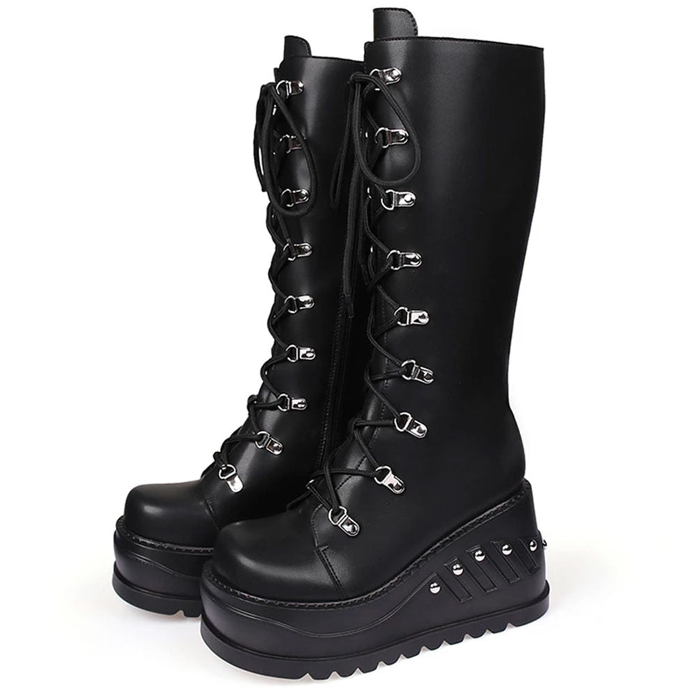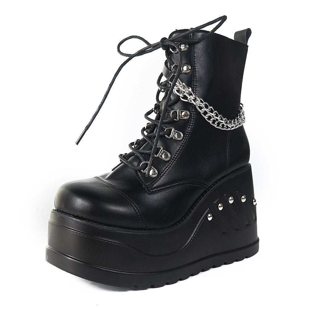 Niulatu 2025 Band Goth Platform Wedges Punk Chunky Mid Calf Boots Women Thick Heel Autumn Trendy Cosplay Casual Shoes Women DJSE