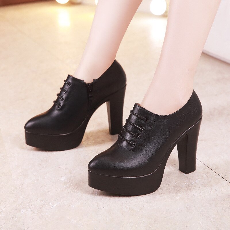 Niulatu 32-43 Deep Mouth Pumps Women Platform Shoes Block Heel 2025 Oxfords High Heels Shoes Soft Leather for Work Dance DJSE