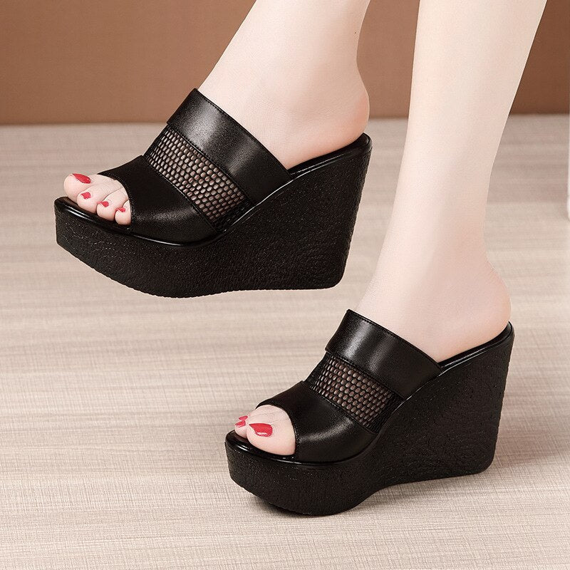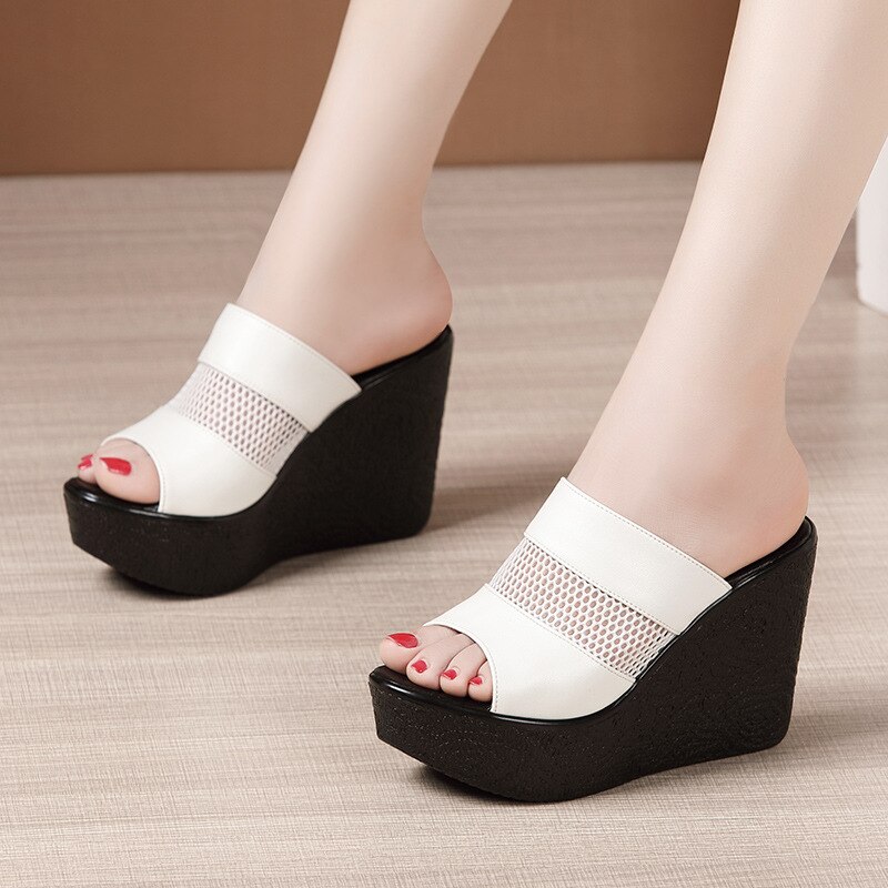 Niulatu 32-43 High Heels Slippers Women Wedding Shoes Summer 2025 Cutout Platform Wedges Slides Ladies Slippers for Office DJSE