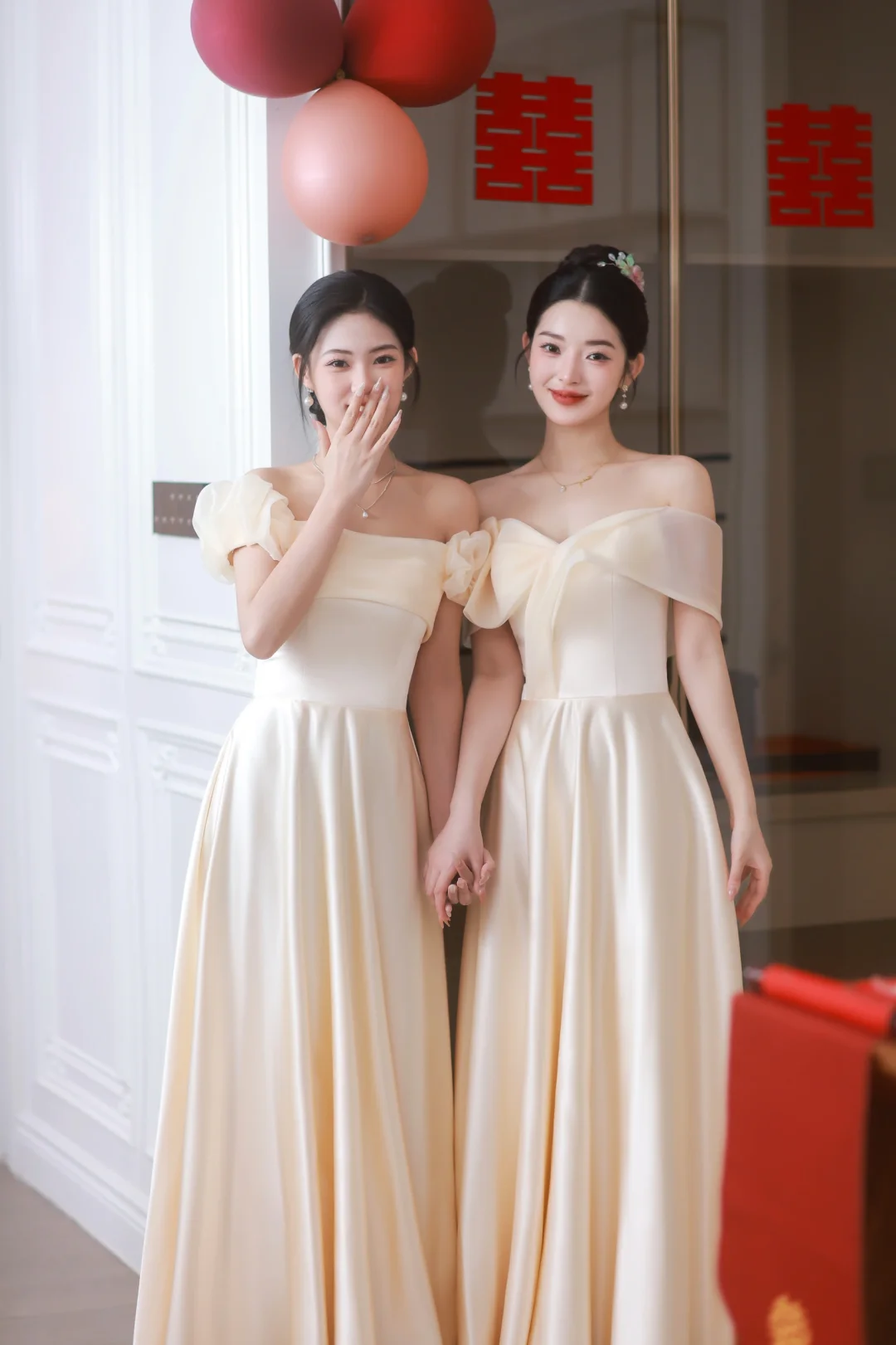 Niulatu A Line Elegant Off The Shoulder Satin Long Bridesmaid Dress HZ1110