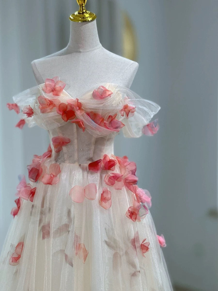 Niulatu A-Line Off The Shoulder Flowers Tulle Long Prom Dress Evening Dress HZ1110