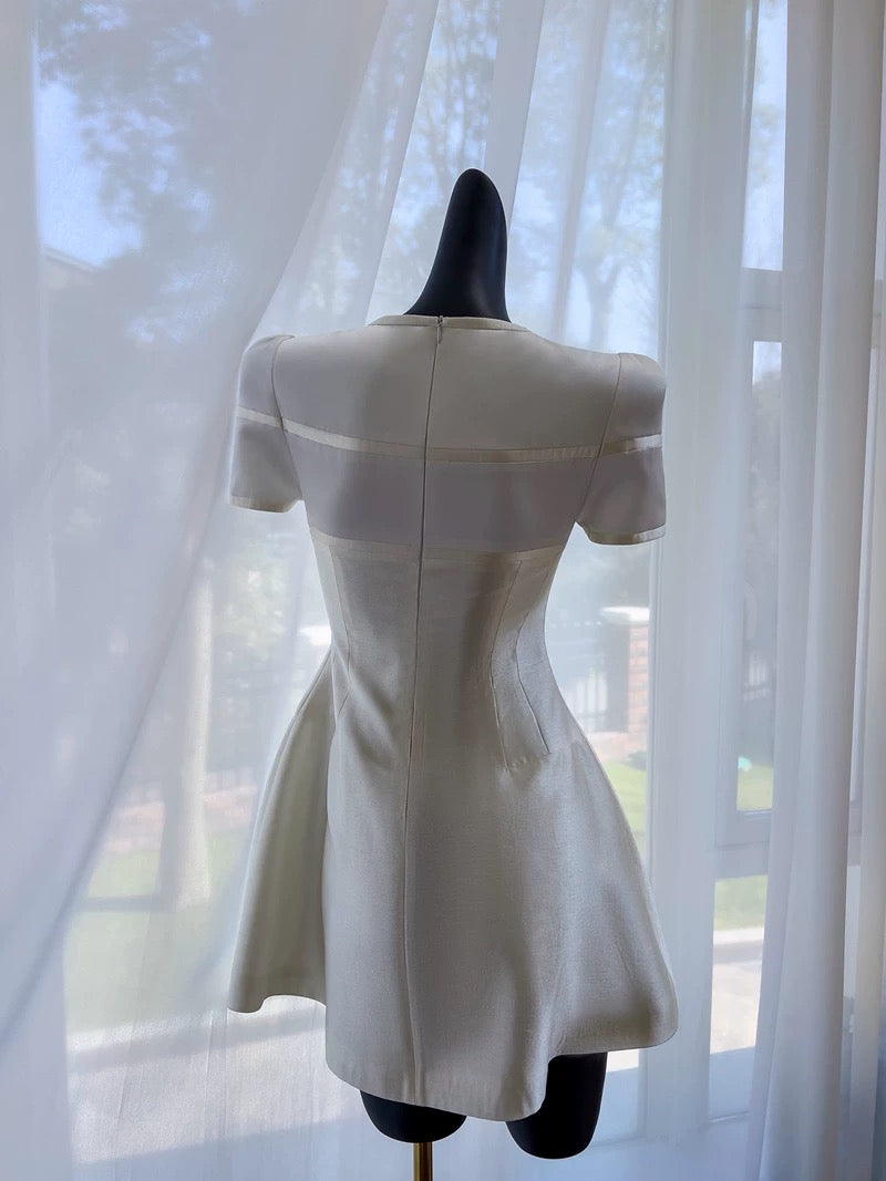 Niulatu A Line Scoop White Short Satin Homecoming Dresses Birthday Outfit HZ1110