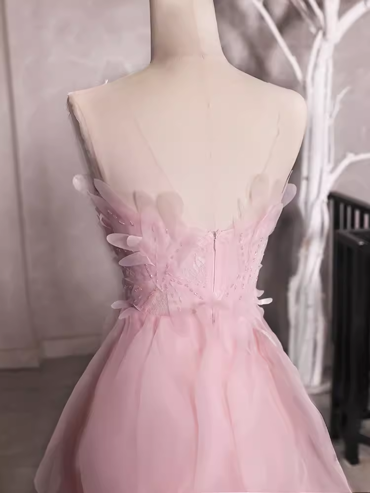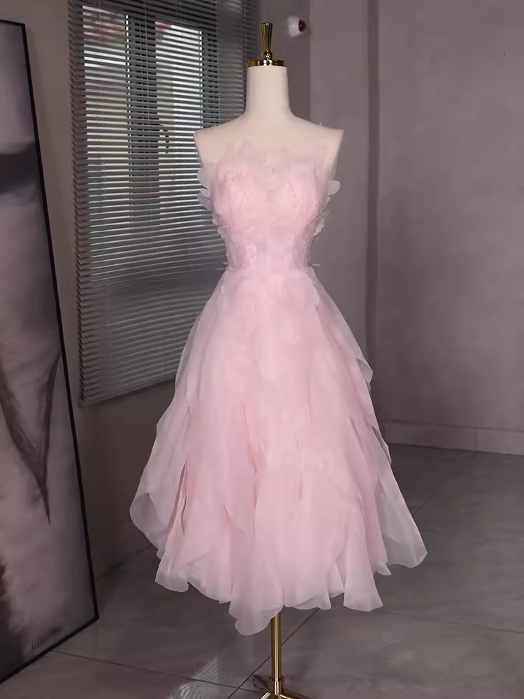 Niulatu A Line Sleeveless Pink Floral Prom Dress HZ1110