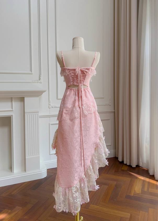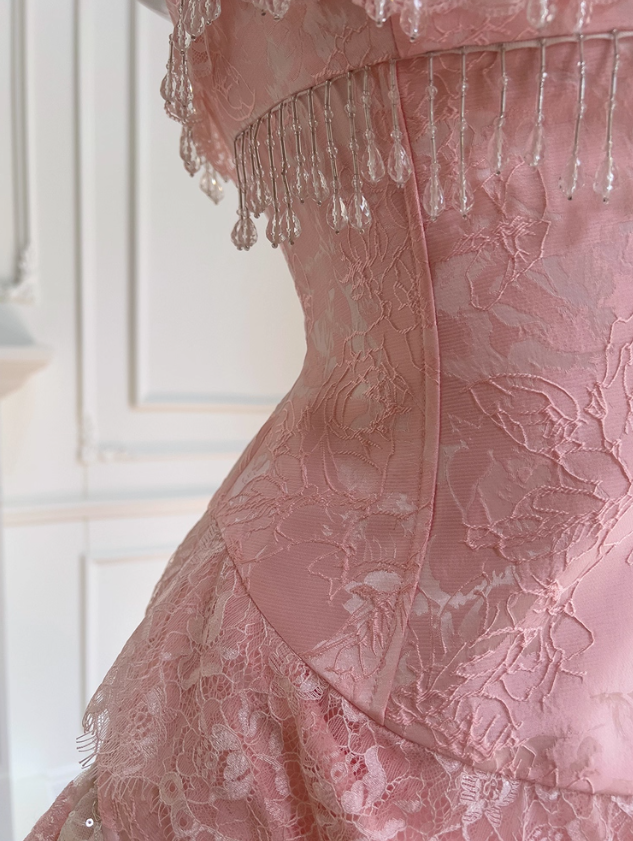 Niulatu A Line Spaghetti Strap Beaded Lace Homecoming Dress Birthday Dress HZ0113
