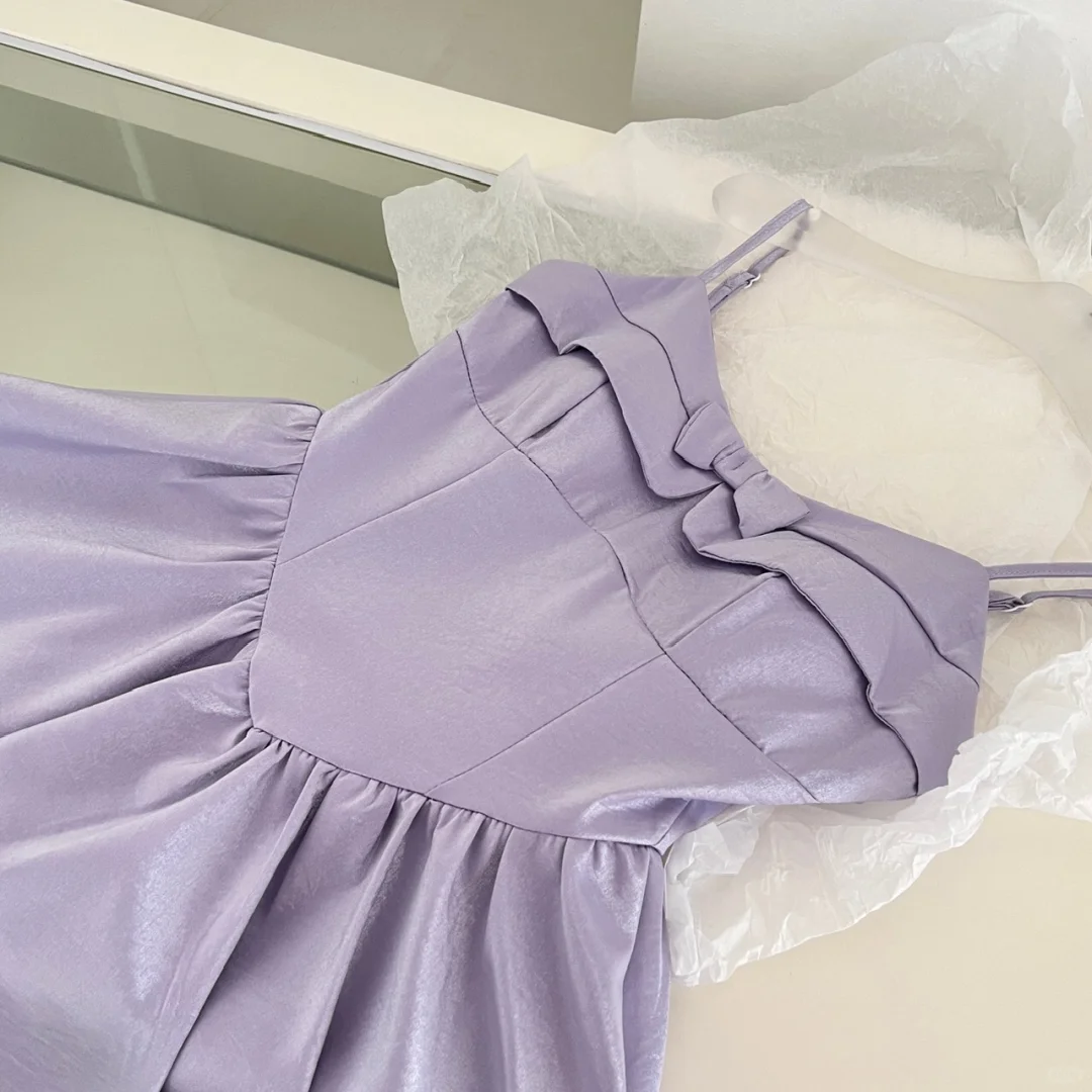 Niulatu A Line Spaghetti Straps Lilac Satin Short Homecoming Dress 17th Birthday Outfits HZ1110
