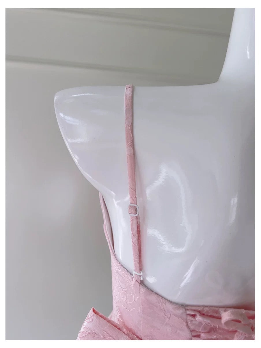 Niulatu A line Spaghetti Straps Pink Floral Printed Pattern Formal Mini Homecoming Dress Short Cocktail Outfits Graduation Dress Hoco Dress HZ1214