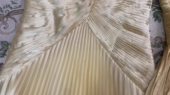 Niulatu A-line Spaghetti Straps Satin Beaded Long Prom Dress V-neck Retro Evening Dress HZ1103