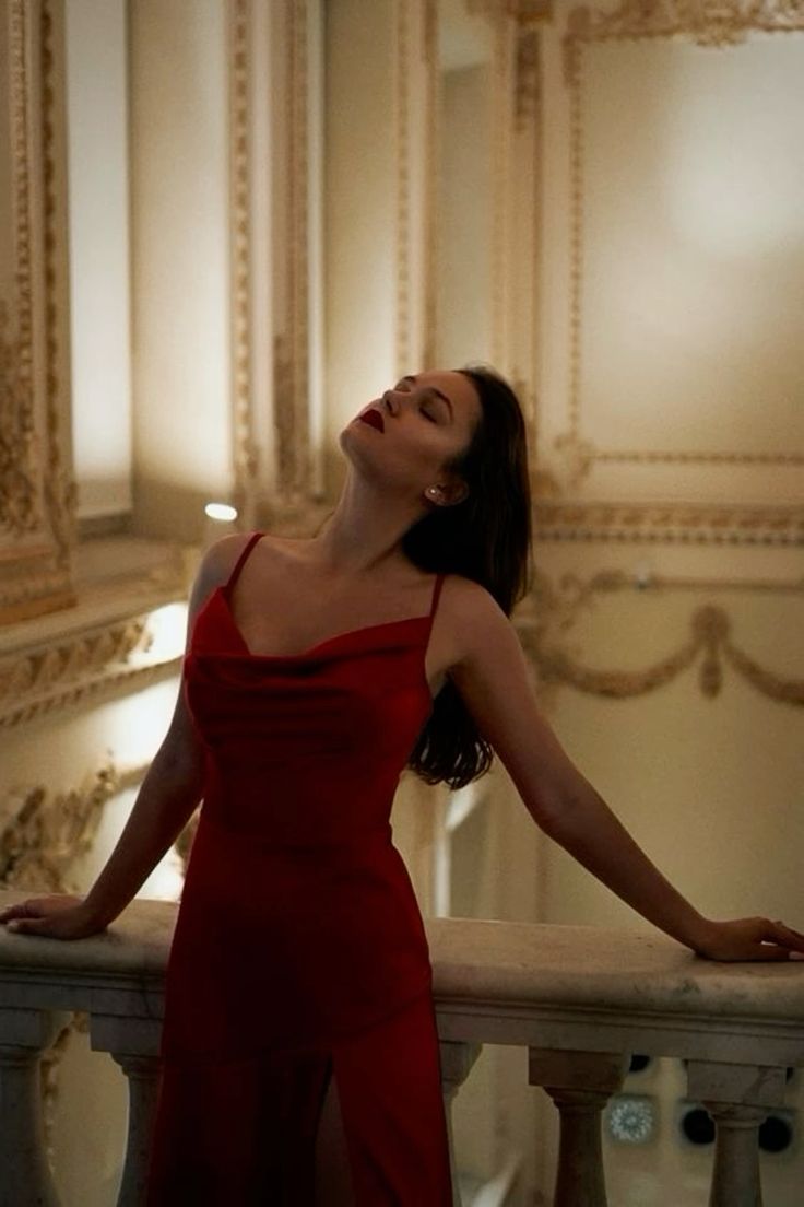 Niulatu A line Spaghetti Straps Slim Fit Red Long Prom Dress Evening Dresses HZ1110
