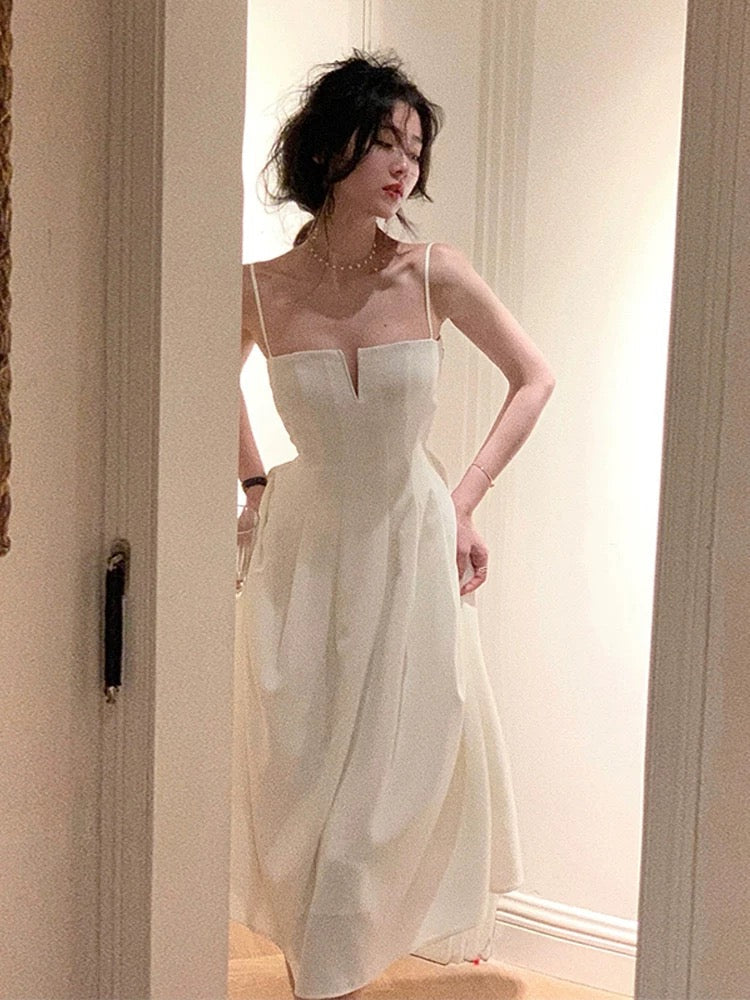 Niulatu A line Spaghetti Straps White Sleeveless Chiffon Prom Dresses Birthday Party Dress HZ1110