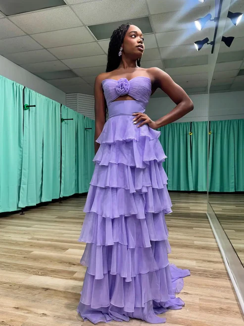 Niulatu A Line Strapless Layer Chiffon Long Prom Dress,Formal Dress HZ1110