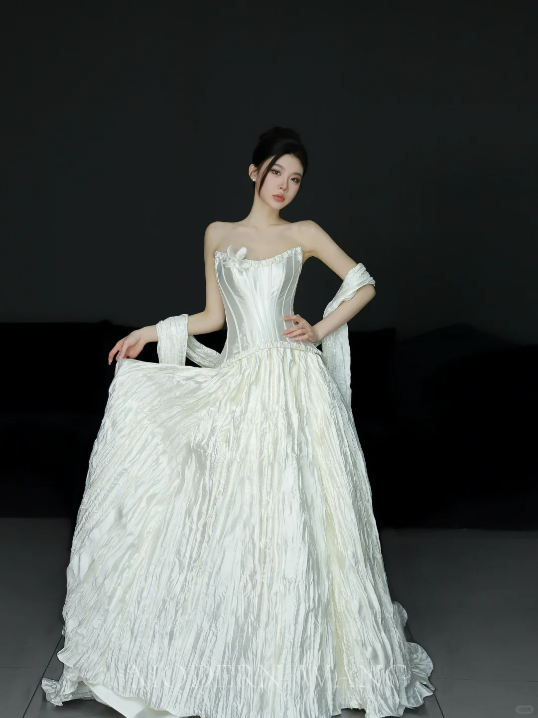 Niulatu A Line Strapless Satin Long Wedding Dresses HZ1110