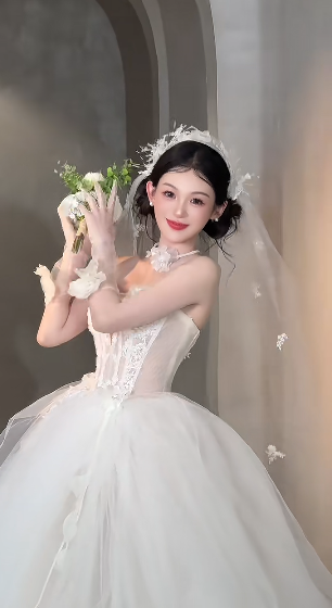 Niulatu A Line Strapless Tulle Applique With Veil Long Wedding Dresses HZ1110
