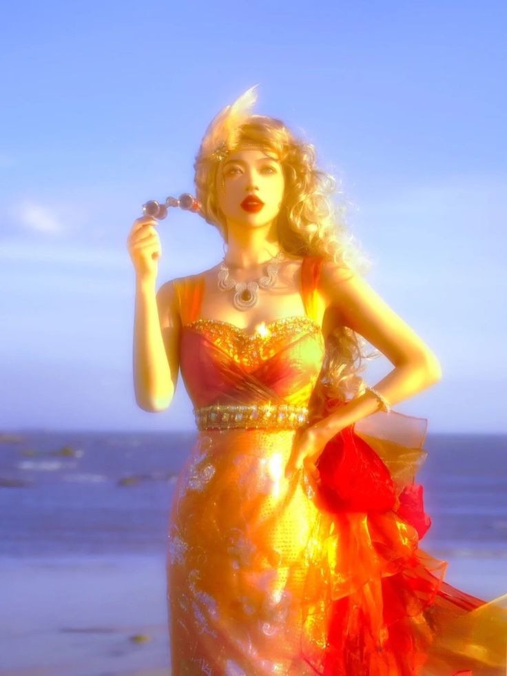 Niulatu A Line Straps Beaded Orange Tulle Prom Dress Graduation Prom Dress HZ0113
