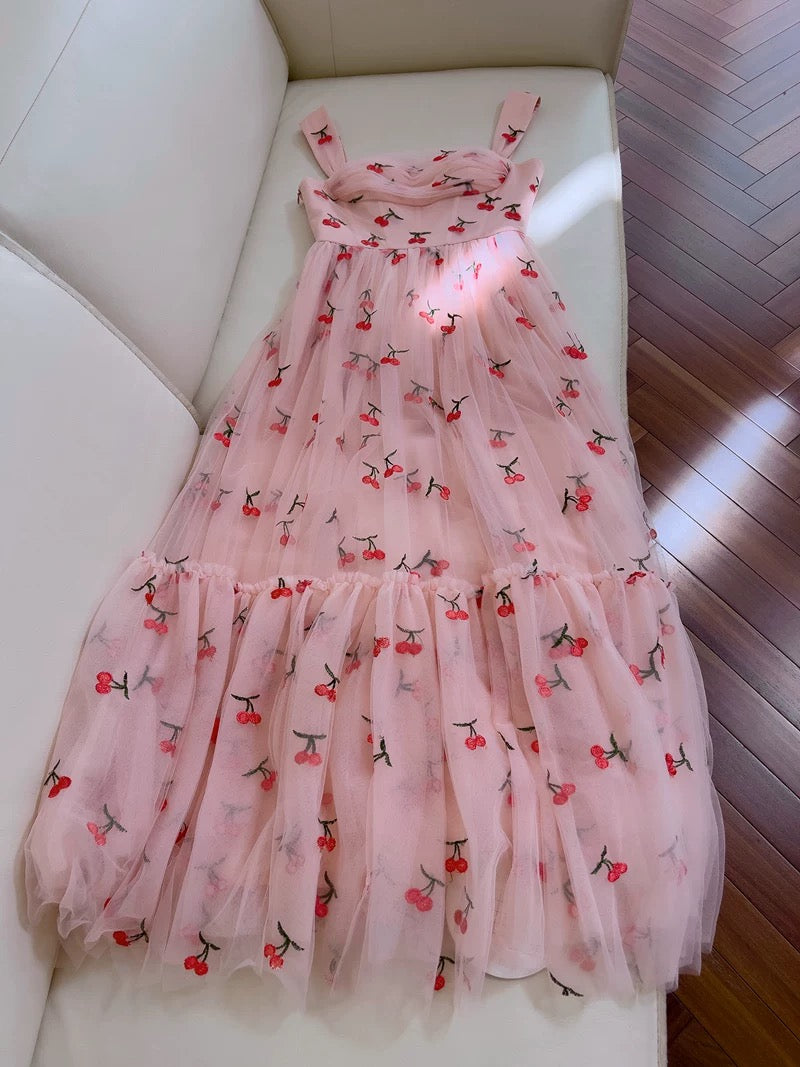 Niulatu A line Straps Pink Floral Prom Dress Formal Dresses HZ1110