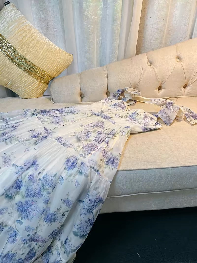 Niulatu A Line Straps Sleeveless Floral Lilac Long Prom Dresses HZ1110