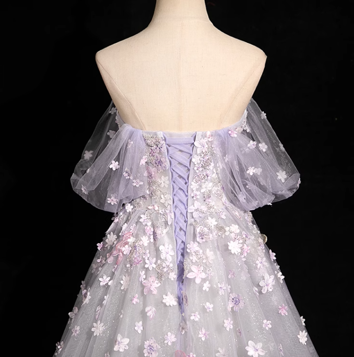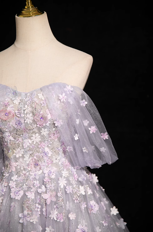 Niulatu A-line sweetheart neck tulle sequin long prom dress, purple formal long dress HZ1108