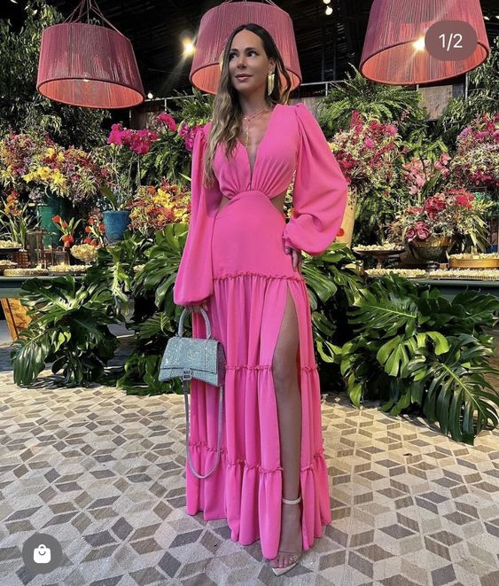 Niulatu A-line V Neck Long Sleeves Evening Dress With Split HZ1007