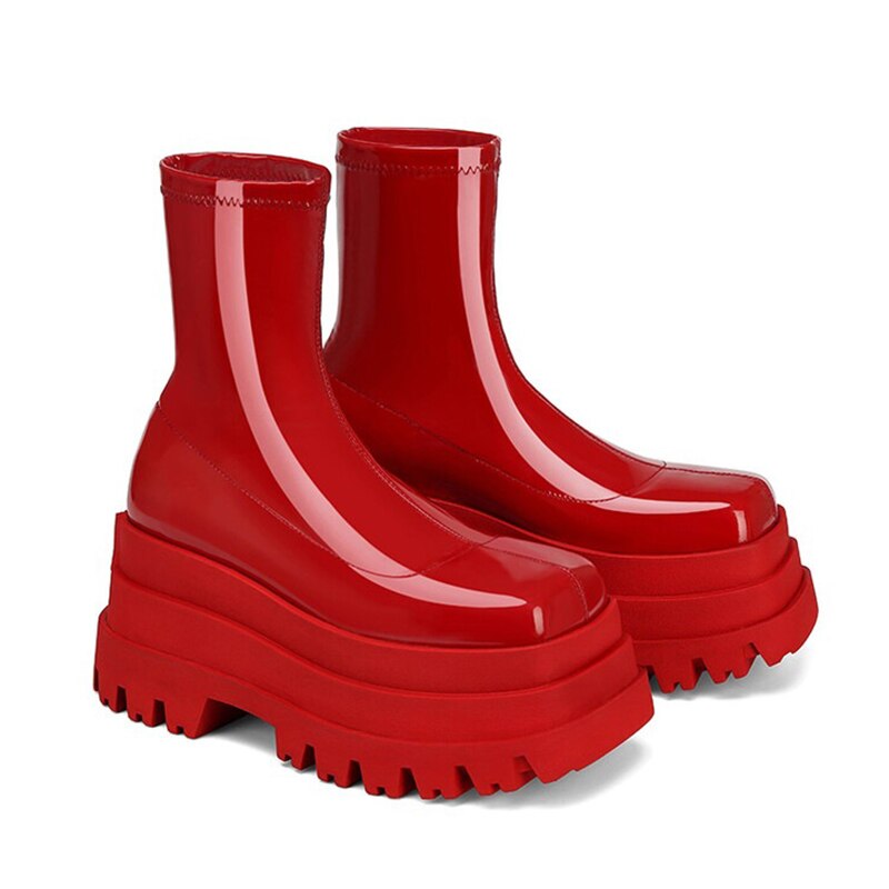Niulatu Ankle Boots for Women Autumn Winter Gothic Thick Bottom Combat Boots Woman Plus Size Patent Leather Punk Shoes DJSE