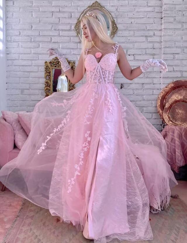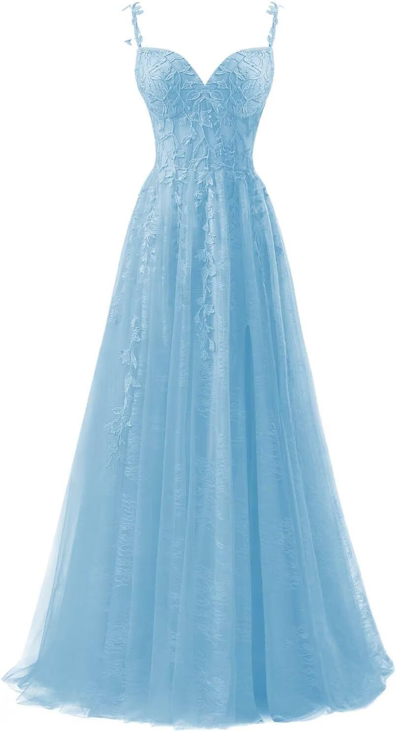 Corset Tulle Prom Dress Ball Gowns for Women Spaghetti Strap lace Applique Evening Gowns