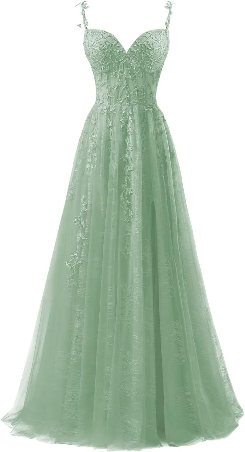 Niulatu Applique Tulle Prom Dresses for Women 2025 Spaghetti Straps Ball Gown Formal Evening Party Gown with HZ1007