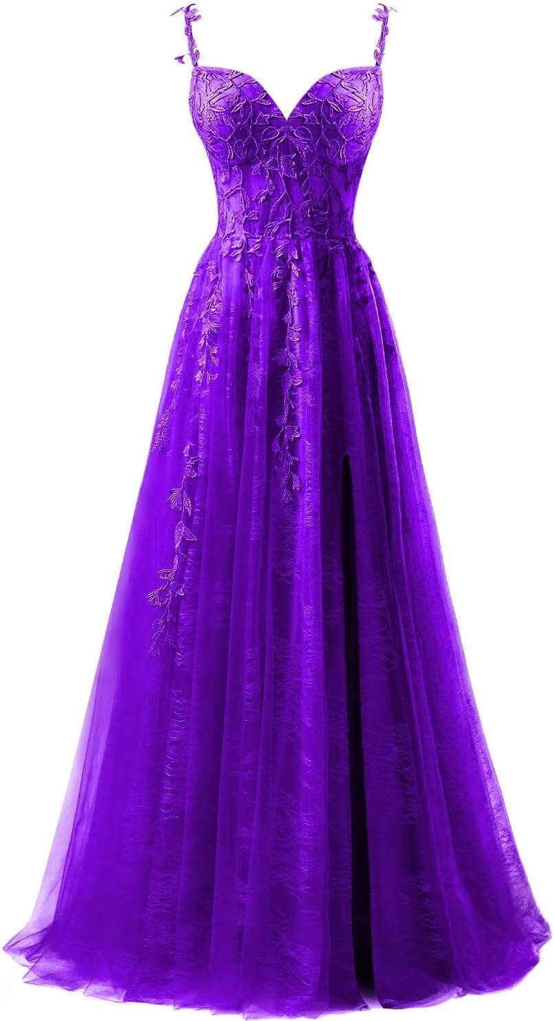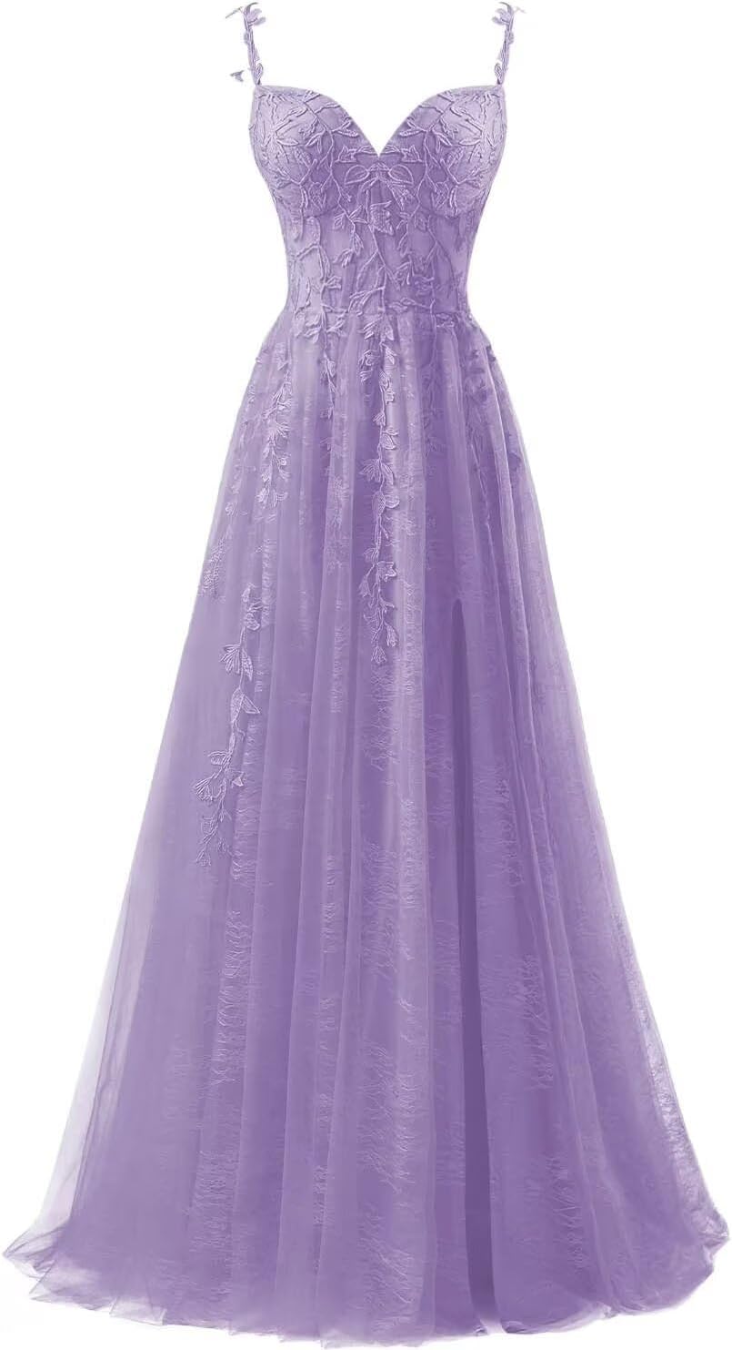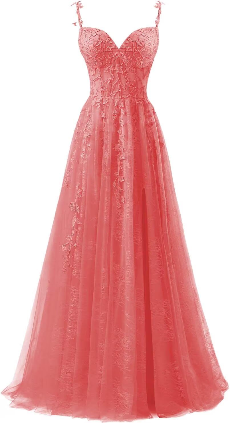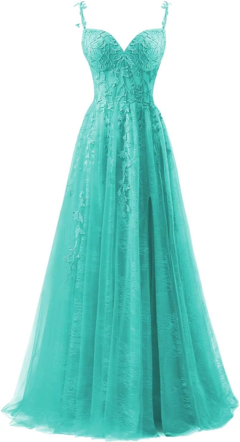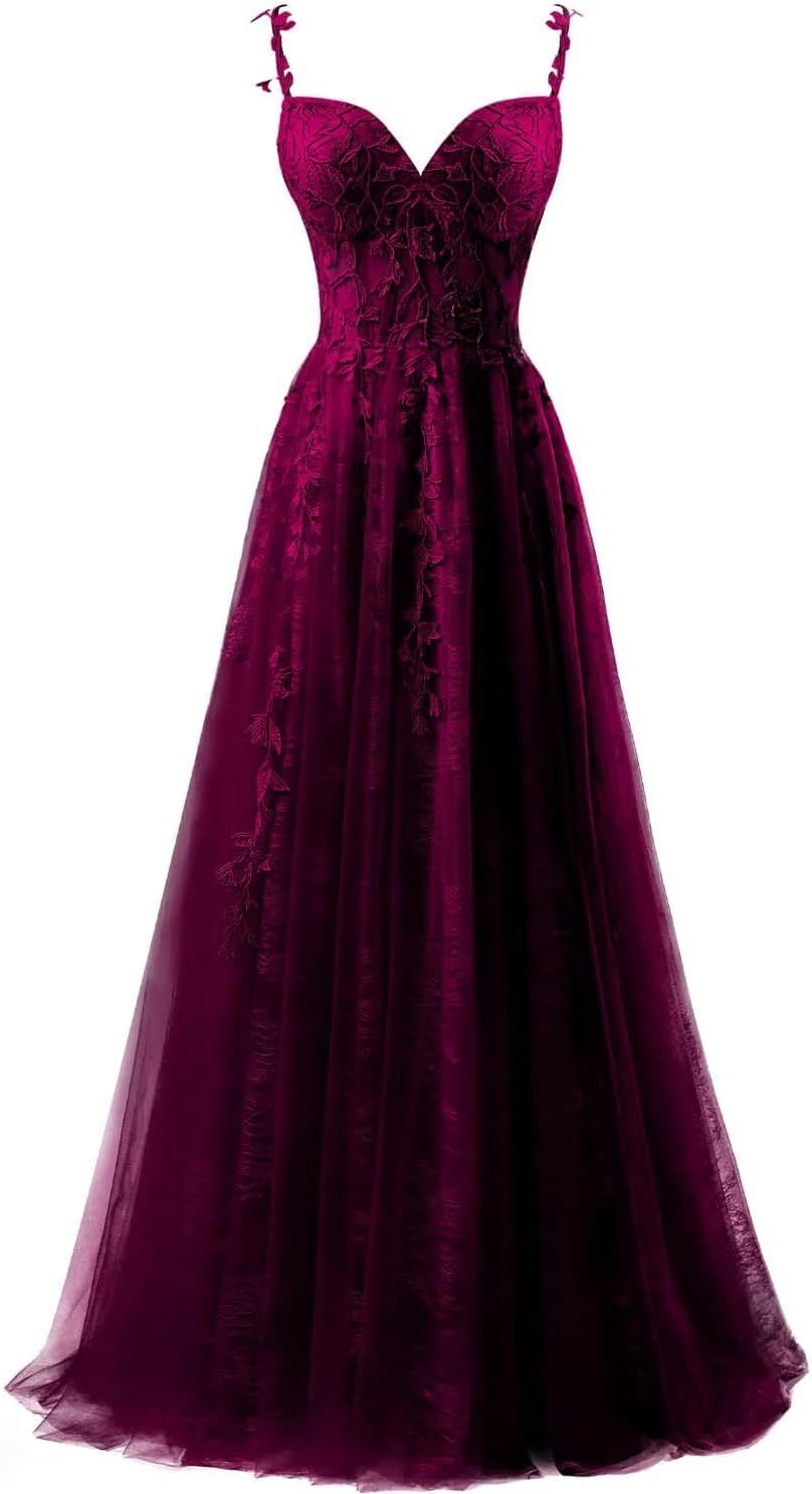 Tulle Lace Prom Ball Gowns for Women Spaghetti Strap Lace Applique Wedding Dresses for Women
