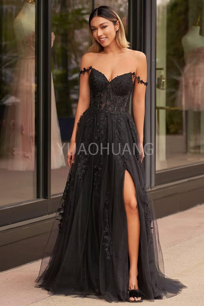 Off Shoulder Lace Corset Prom Dresses A Line Ball Gown with Slit for Women 2025