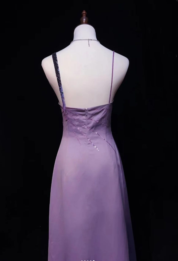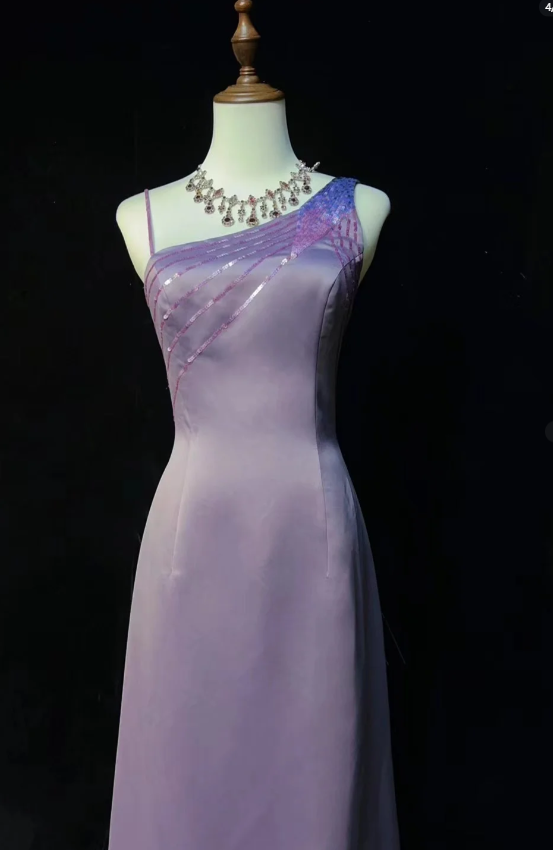 Niulatu Asymmetric Neck Sheath Lavender Long Prom Dresses Satin Lavender Evening Dresses HZ1026