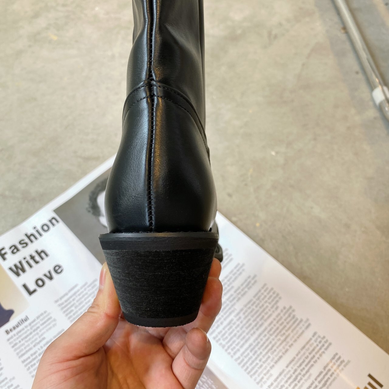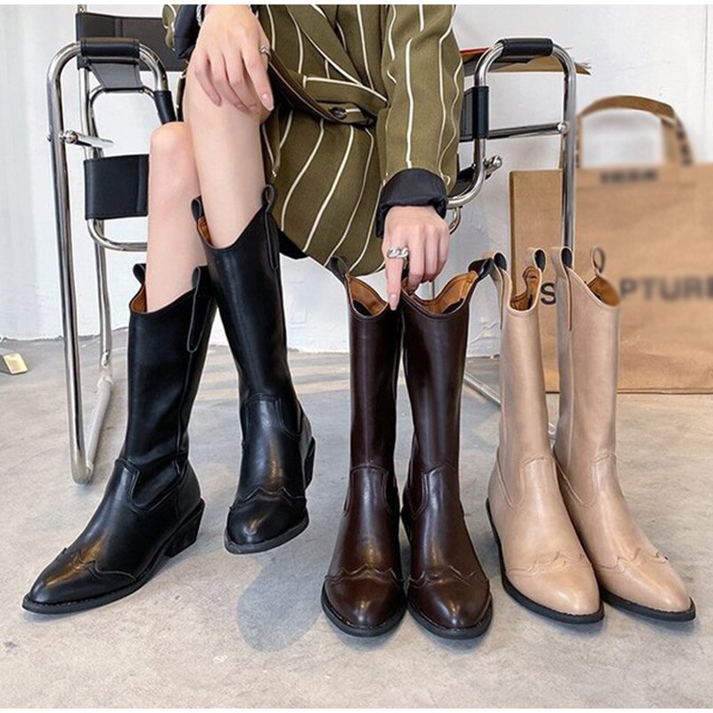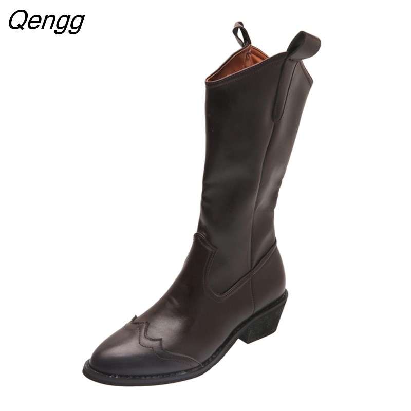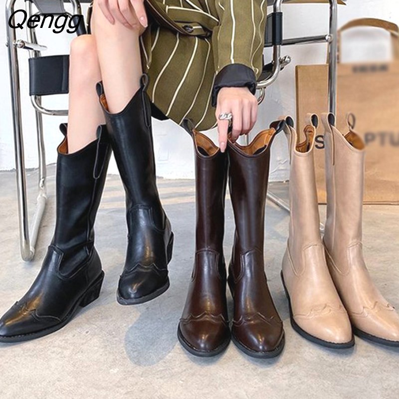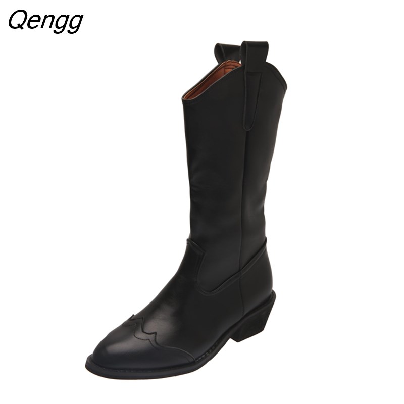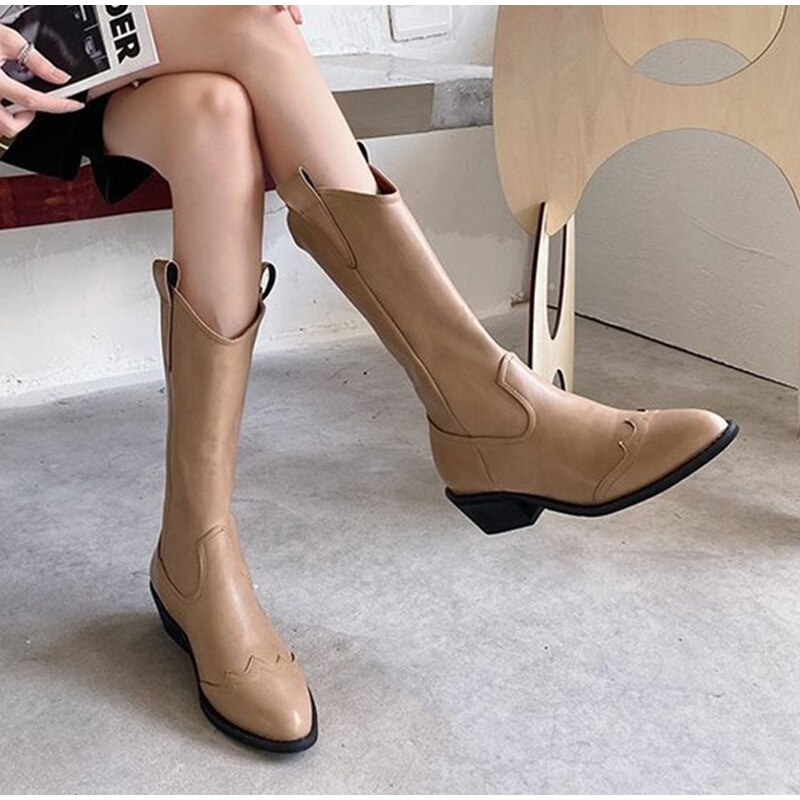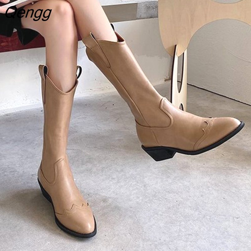 Niulatu Autum Women Knee High Boots Mid-Calf Heels Cowboy Boots Women Pointed Toe Shoes Female Winter Zipper Boots Plus Size DJSE