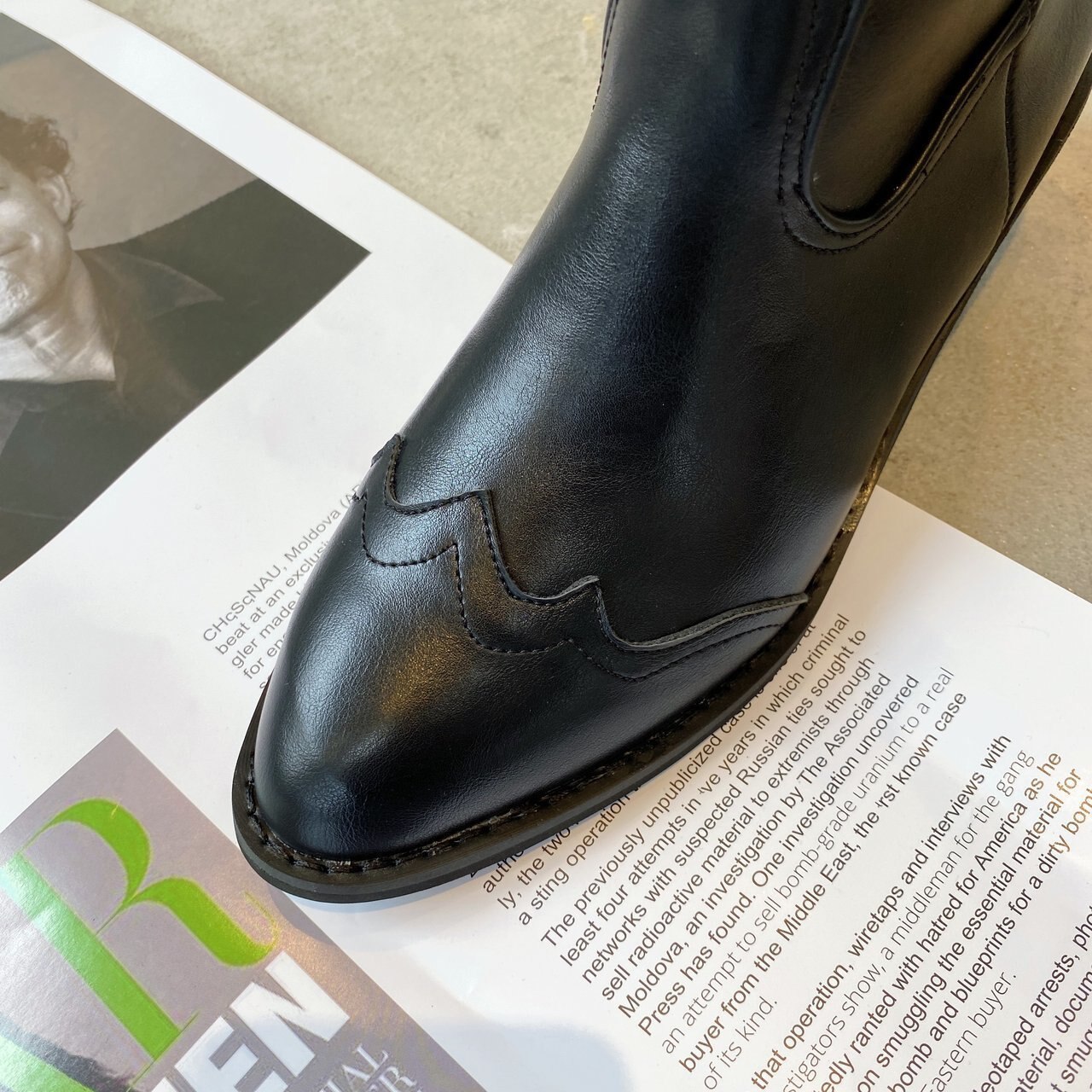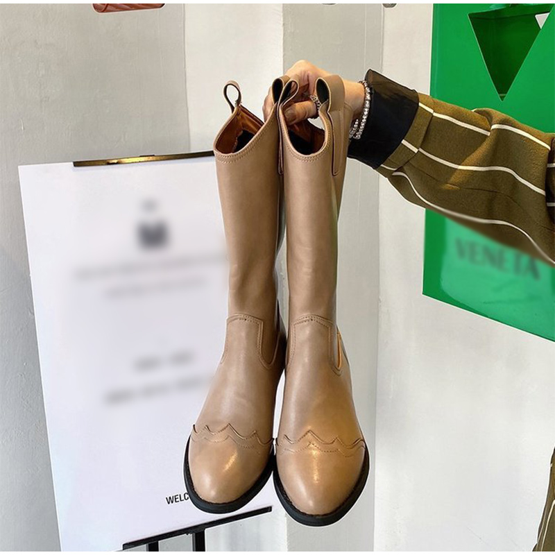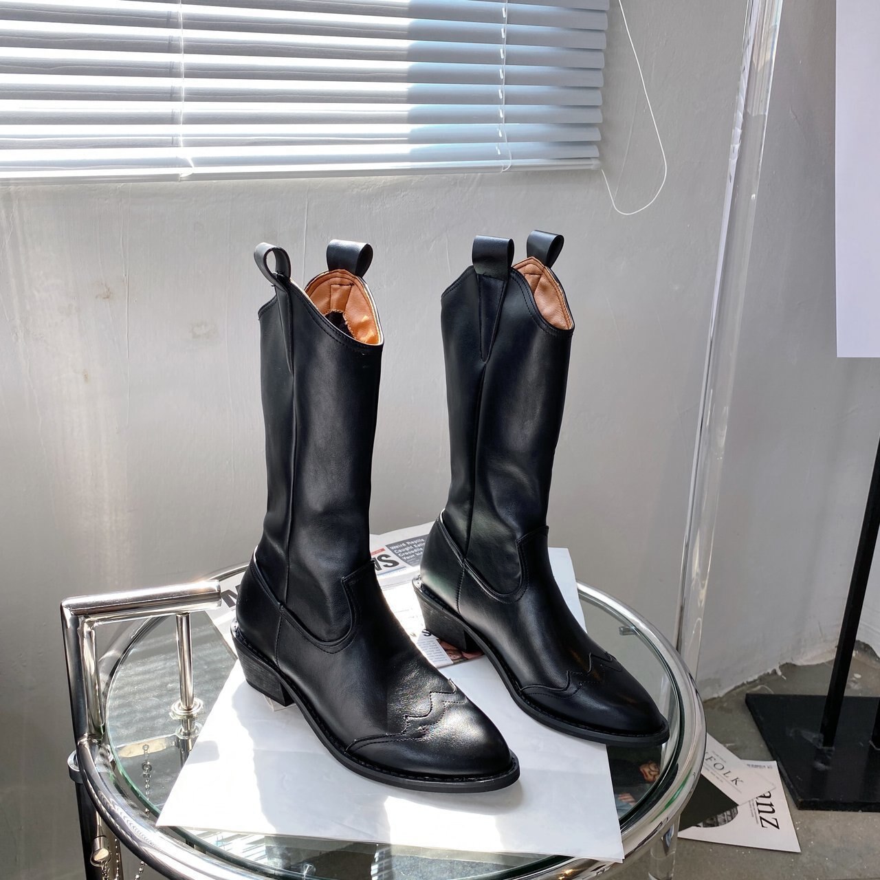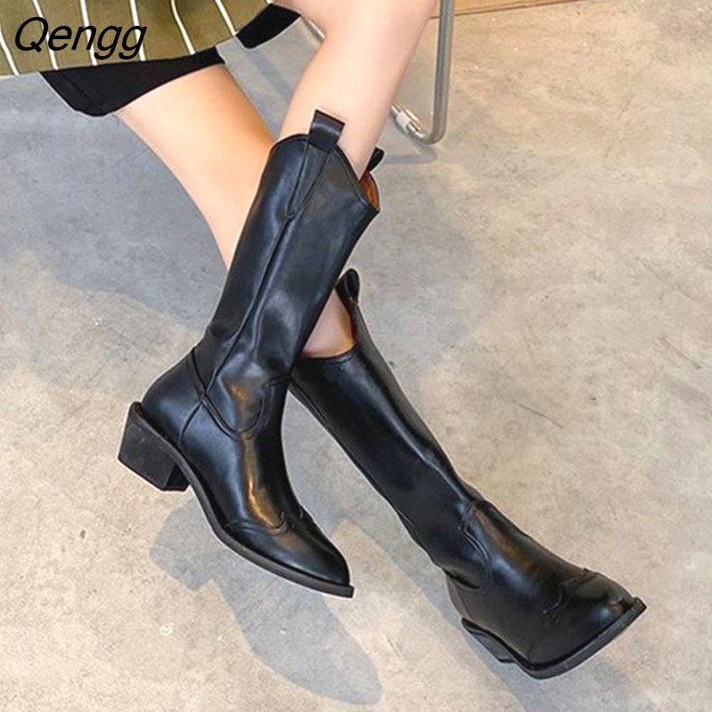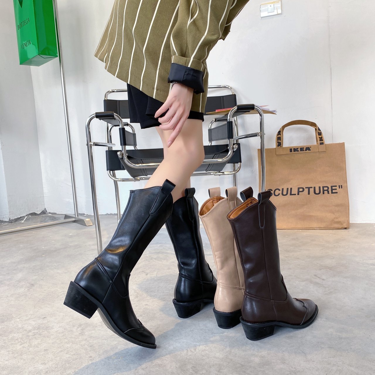 Niulatu Autum Women Knee High Boots Mid-Calf Heels Cowboy Boots Women Pointed Toe Shoes Female Winter Zipper Boots Plus Size DJSE
