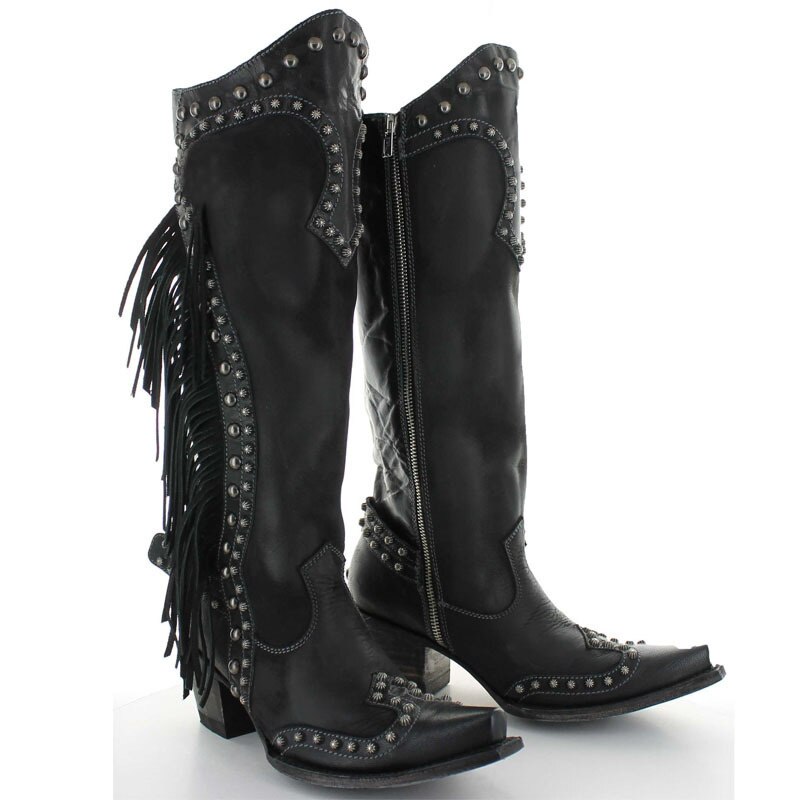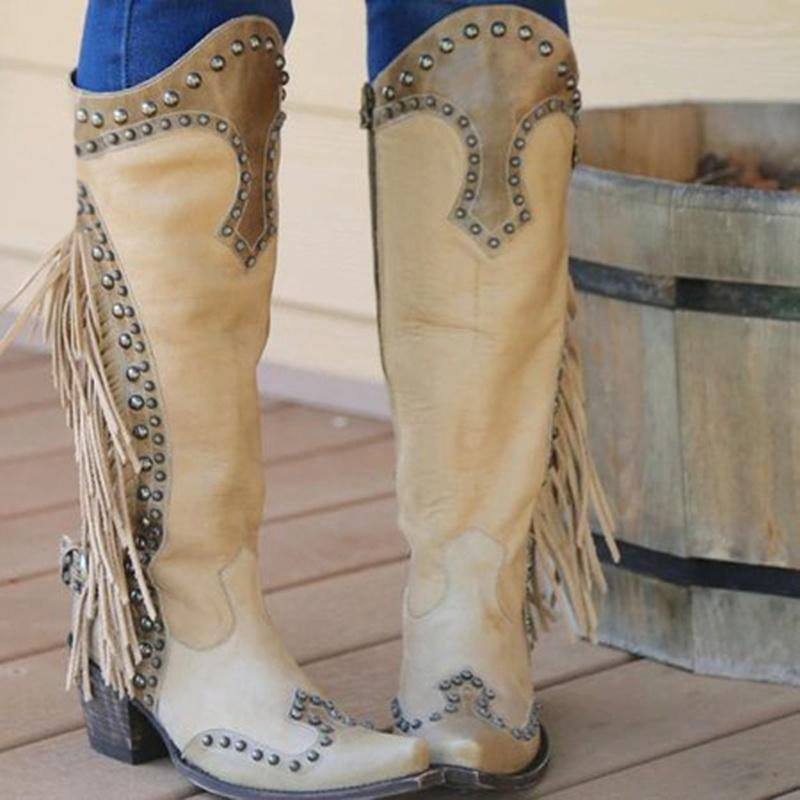 Niulatu Autumn Winter Women's Large Tassel Restoring Beige Black Western Boots Pointed Thick Heels Mid Boots Women Shoes DJSE