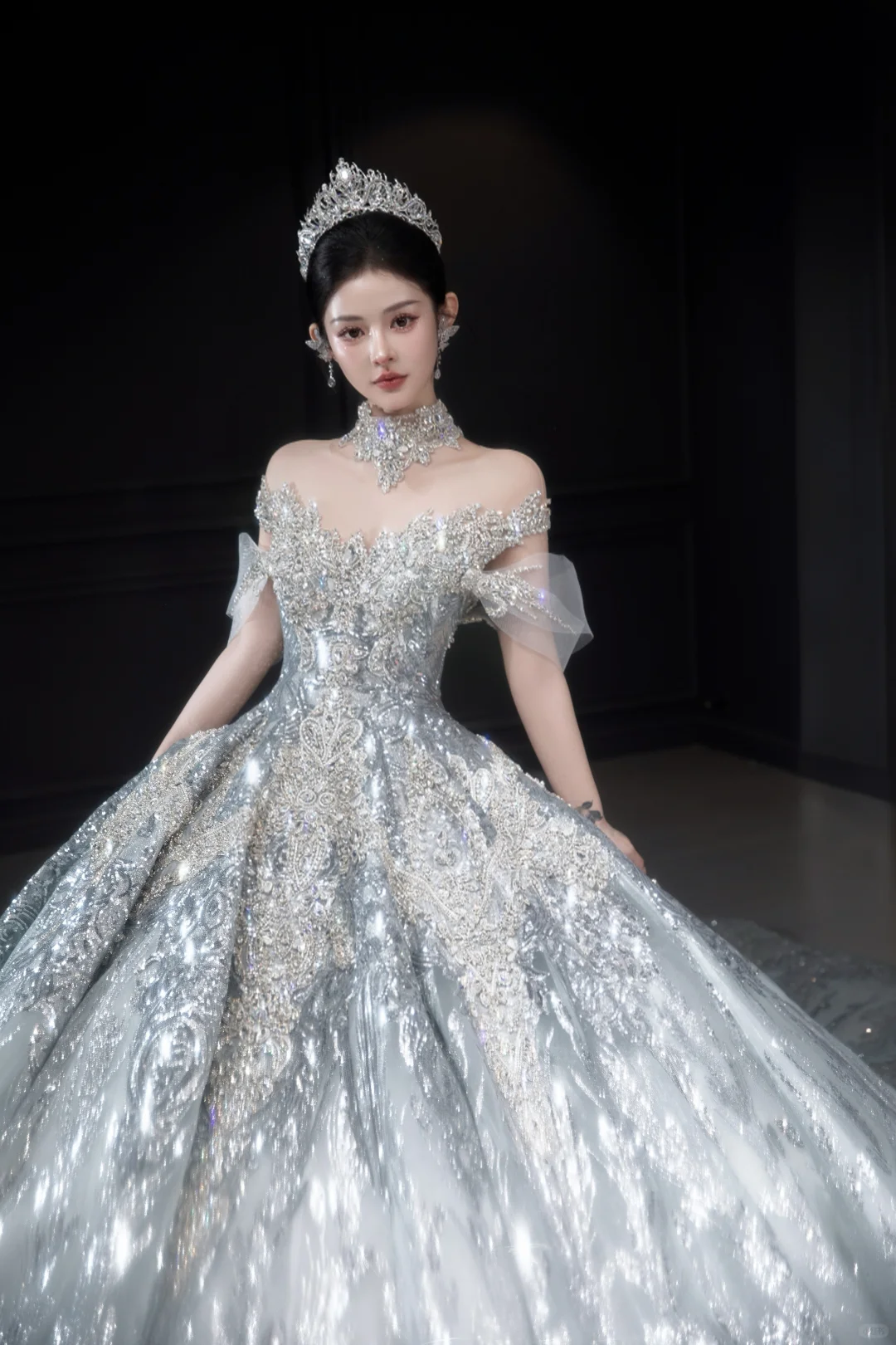 Niulatu Ball Gown Off The Shoulder Tulle Sequin Long Wedding Dresses HZ1110