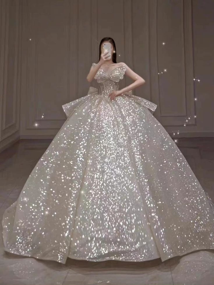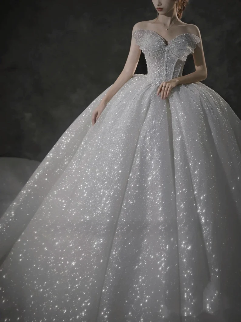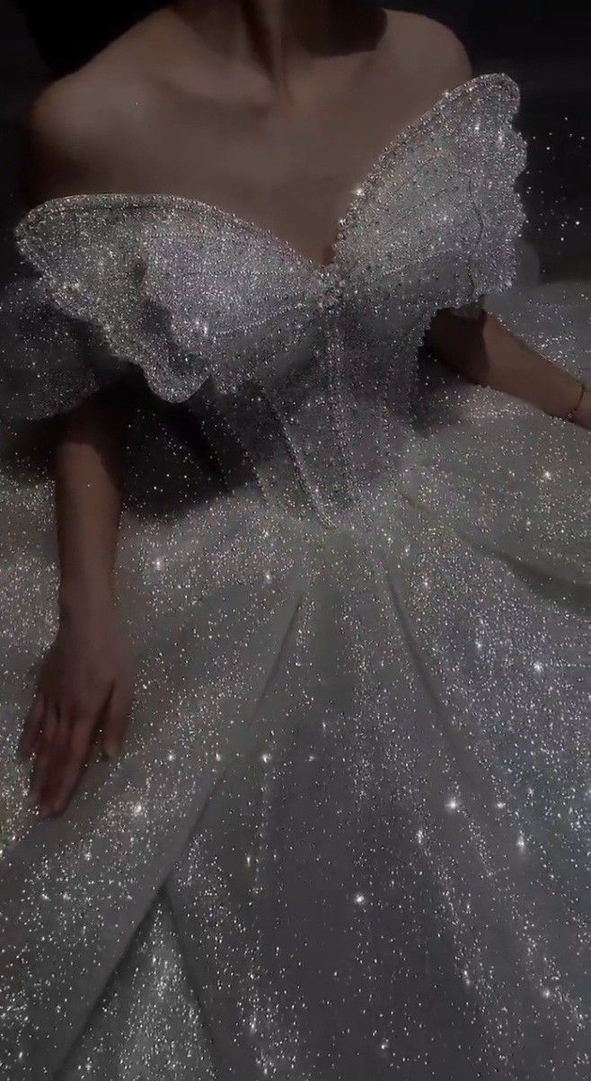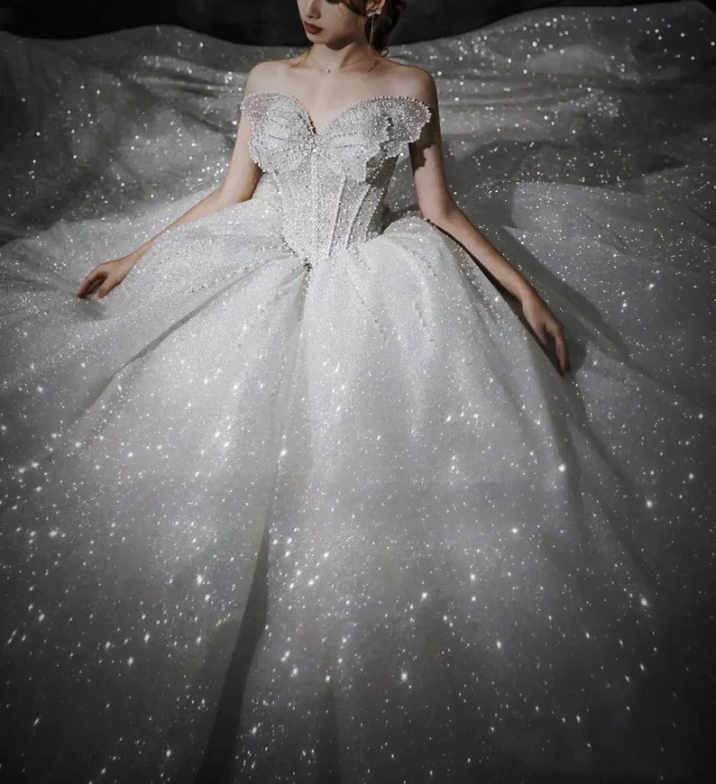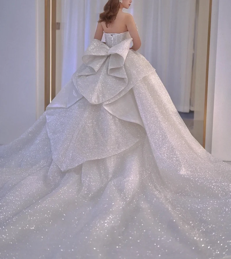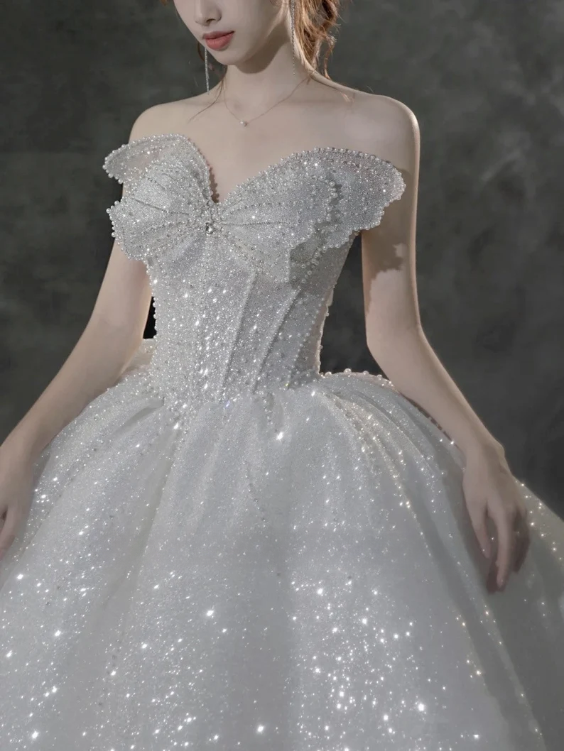 Niulatu Ball Gown Strapless Beaded Sequin Prom Dress Wedding Dress with Butterfly HZ0113