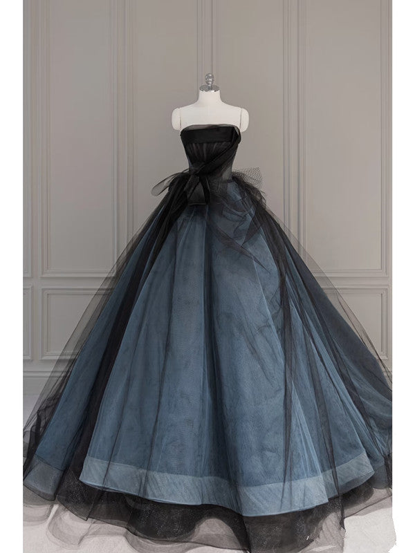 Niulatu Ball Gown Strapless Blue Long Prom Dresses 1950s Retro Evening Dress HZ1110