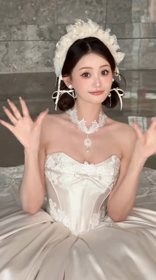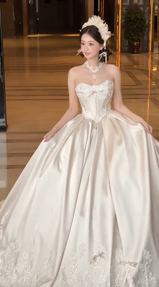 Niulatu Ball Gown Strapless Satin Applique Long Wedding Dresses HZ1110