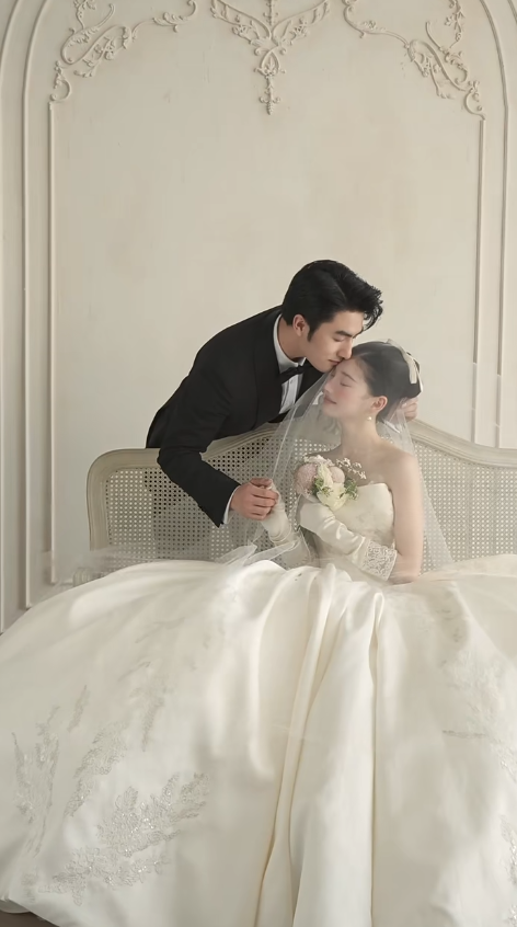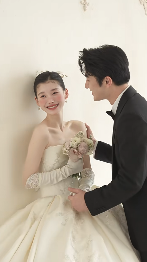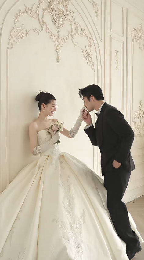 Niulatu Ball Gown Strapless Satin Lace With Veil And Gloves Long Wedding Dresses HZ1110