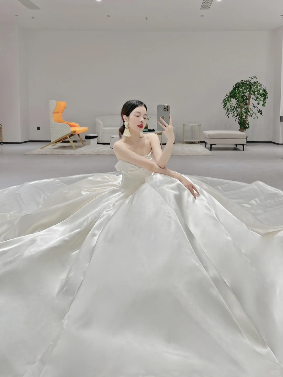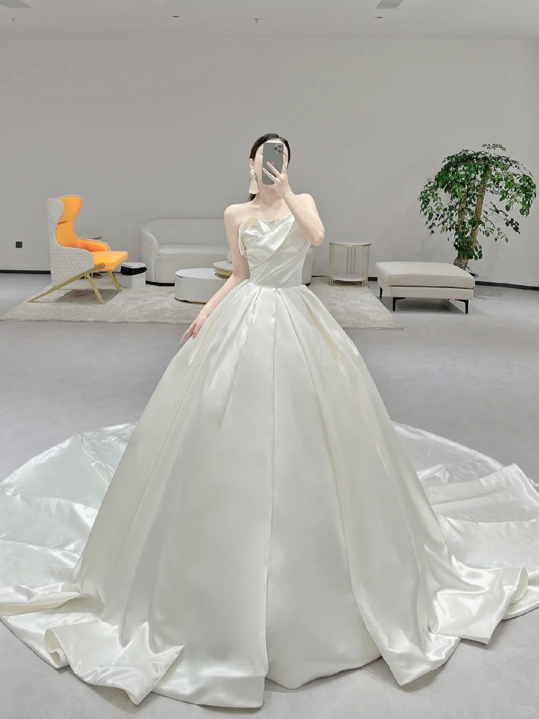 Niulatu Ball Gown Strapless Satin Pleated Long Wedding Dresses HZ1110
