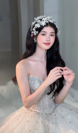 Niulatu Ball Gown Strapless Tulle Sequin Beaded Long Wedding Dresses HZ1110