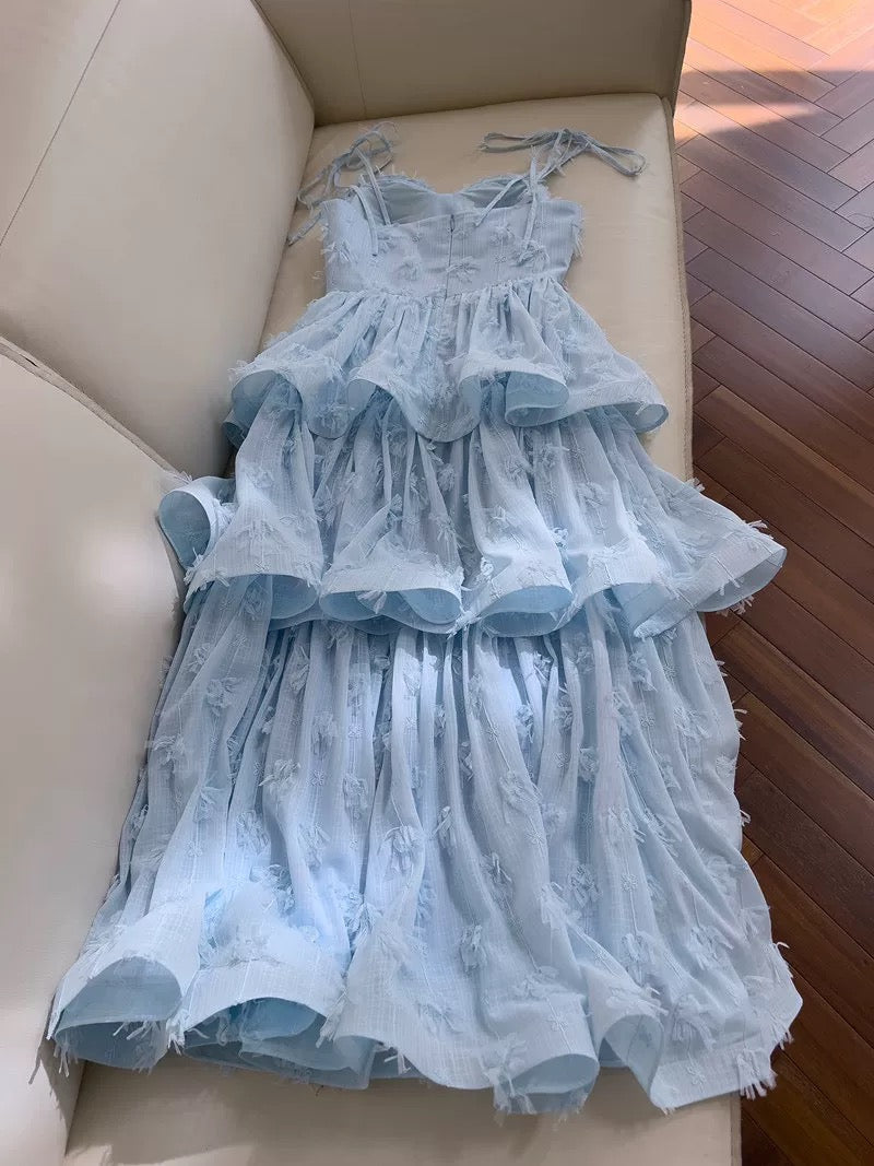 Niulatu Ball Gown Straps Lace Ruffles Light Sky Blue Length Prom Dress Formal Dresses HZ1110
